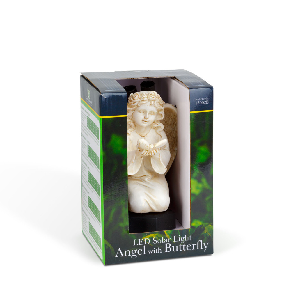 Varázslatos, szolár kerti dísz, mely éjszaka életre kel – a békés angyalka kezében pillangóval kiváló dekoráció bármely napszakban, szürkület után lágy melegfehér fénnyel ragyogja be környezetét.