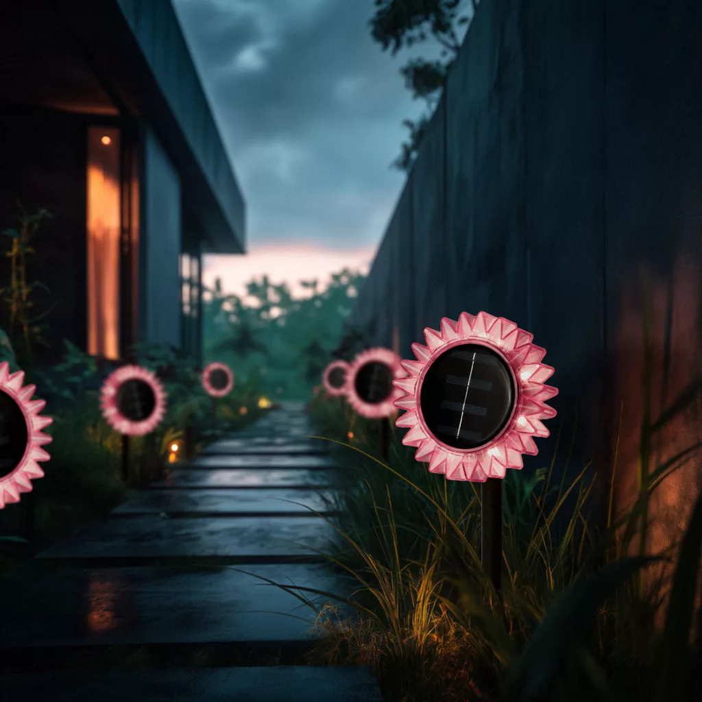 Ez a dekoratív szolár napraforgó lámpa hangulatossá varázsolja kertjét vagy teraszát. A többféleképpen rögzíthető kialakításnak köszönhetően leszúrhatóként és felakasztva is használható, így könnyedén illeszkedik bármilyen kültéri környezetbe. A beépített napelem napközben hatékonyan gyűjti a napfényt, melyből energiát biztosít az esti melegfehér LED világításhoz. A lámpa automatikusan kapcsol be sötétedés után, így nemcsak szép, de praktikus megoldás is a kert díszítésére.