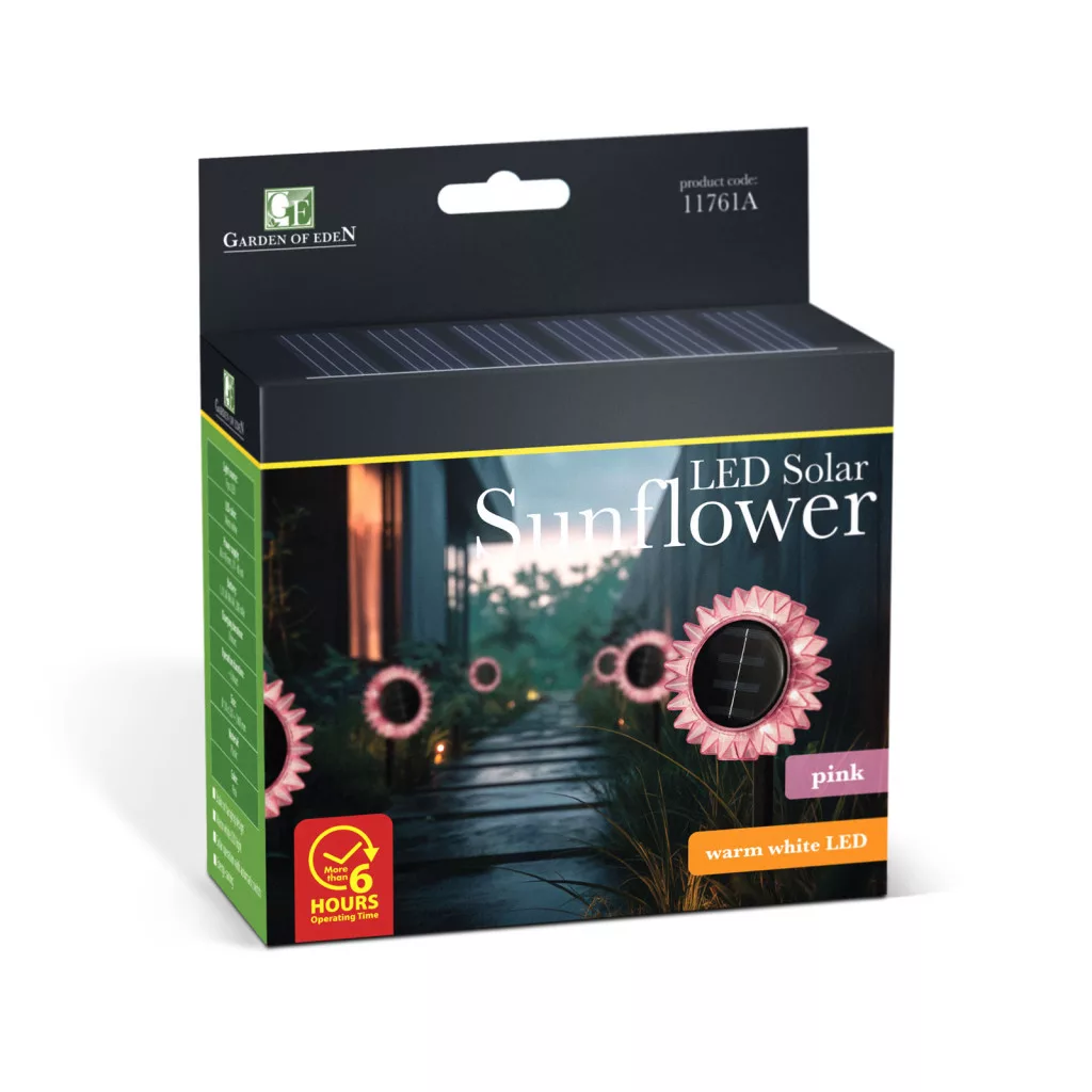 Szolár napraforgó - rózsaszín - leszúrható / felakasztható - 13 x 6,5 x 35 cm