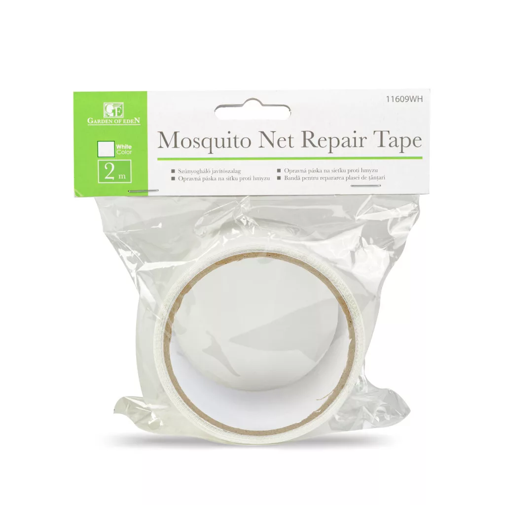 Ez az öntapadós szalag, sérült, szakadt szúnyoghálók javítására szolgál. A sérült részt, a szalagból levágott tetszőleges hosszú szalaggal javíthatja. Akár foltokban történő javítás is lehetséges. A fehér szín, az univerzális szúnyoghálók között egyik leggyakrabban előforduló szín, így a legtöbb szúnyogháló javításához ideális eszköz.