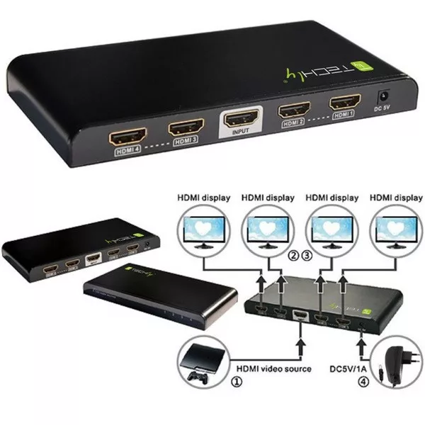 TECHLY HDMI splitter, 1 in 4 out, 30 méter, 4K Ultra HD