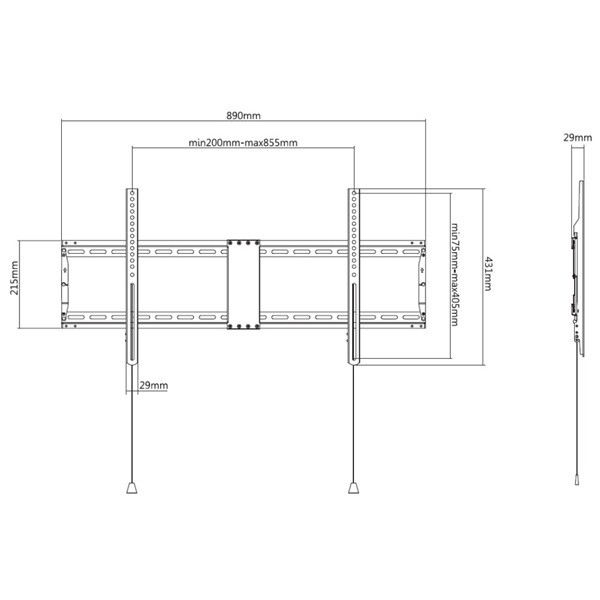 • VESA compatible: 200x200, 300x200, 300x300, 400x200, 400x300, 400x400, 600x400, 600x600, 800x400