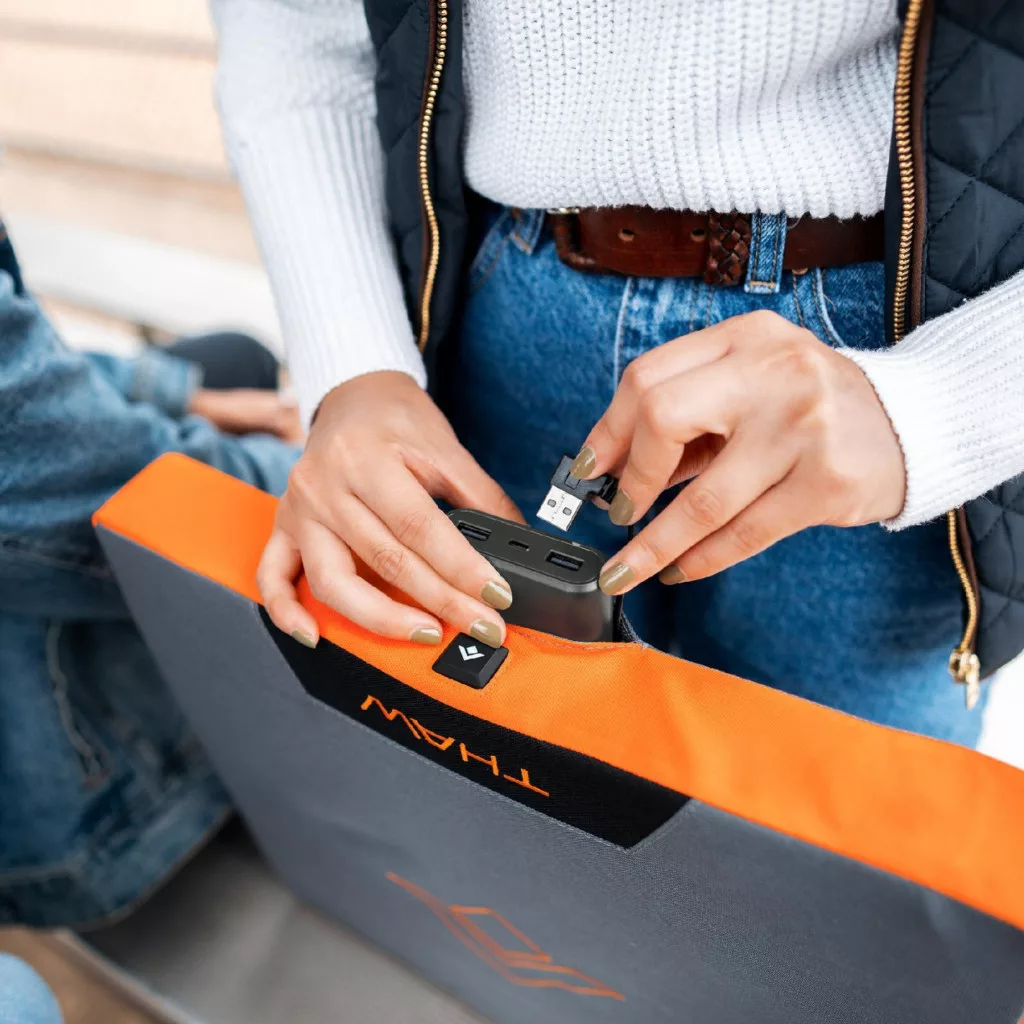 THAW THA-BOD-0015-G fűthető ülőpárna powerbankkal, 10.000 mAh kapacitás, 3 üzemmód, újratölthető