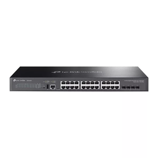 TP-LINK Switch 24x1000Mbps + 4x10Gbps SFP + 1xkonzol port, Menedzselhető, SG5428X