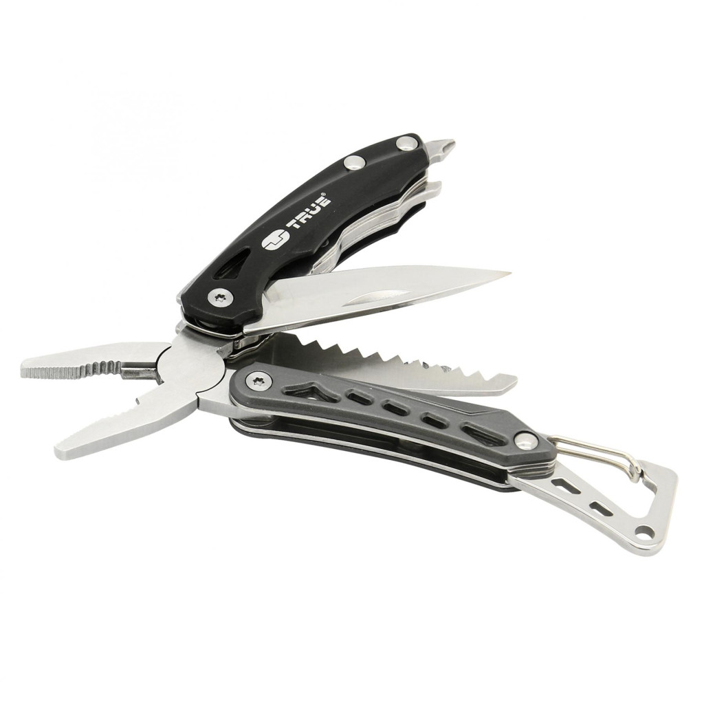 A True Utility Seven TU180K több mint egy szokásos multifunkciós szerszám, ez egy igazi mindenes, amely a mindennapi kihívásokhoz készült. Az eszköz magában foglal egy rugós, rozsdamentes acélból készült harapófogót, drótvágót, csillagfejű és laposfejű csavarhúzót, továbbá egy kés, fűrész, sörnyitó, karabiner és reszelő is helyet kapott benne. A szerszámok rozsdamentes acélból készültek, így garantált az időtállóság és a megbízhatóság.