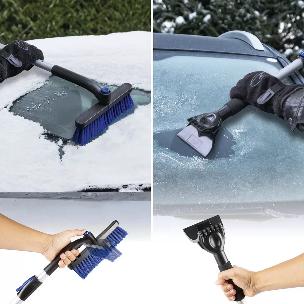 A termék kiváló minőségű és strapabíró anyagból készült. Az egyik oldalon egy jégkaparó található jégtörő karmokkal, amelyek lehetővé teszik a jég gyors eltávolítását. A termék másik oldalán egy erős sörtéjű kefe található, amellyel gyorsan megszabadíthatod autódat a lehullott hótól. A kefe 360°-ban forgatható és 90°-ban rögzíthető. Ezenkívül a fogantyú puha párnázott és teleszkópos. Alkalmazástól függően a fogantyú 77,5-100 cm között állítható.