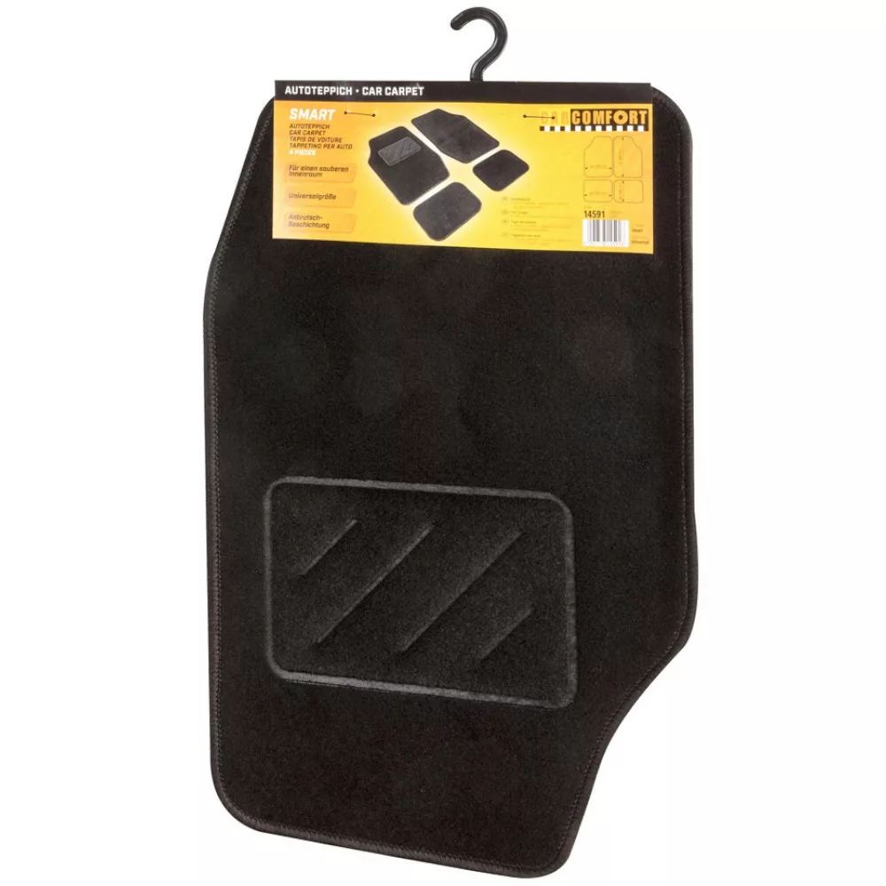 A SMART autószőnyeg kiváló minőségű anyagból készült, amely klasszikus megjelenésű, hosszú ideig védi a lábteret. A vezetőoldalon sarokvédő található, így a szőnyeg a legnagyobb igénybevételnek kitett ponton is megerősített. A szőnyegek szélei szegettek, ami megakadályozza a foszlást és gyönyörű felületet biztosít.