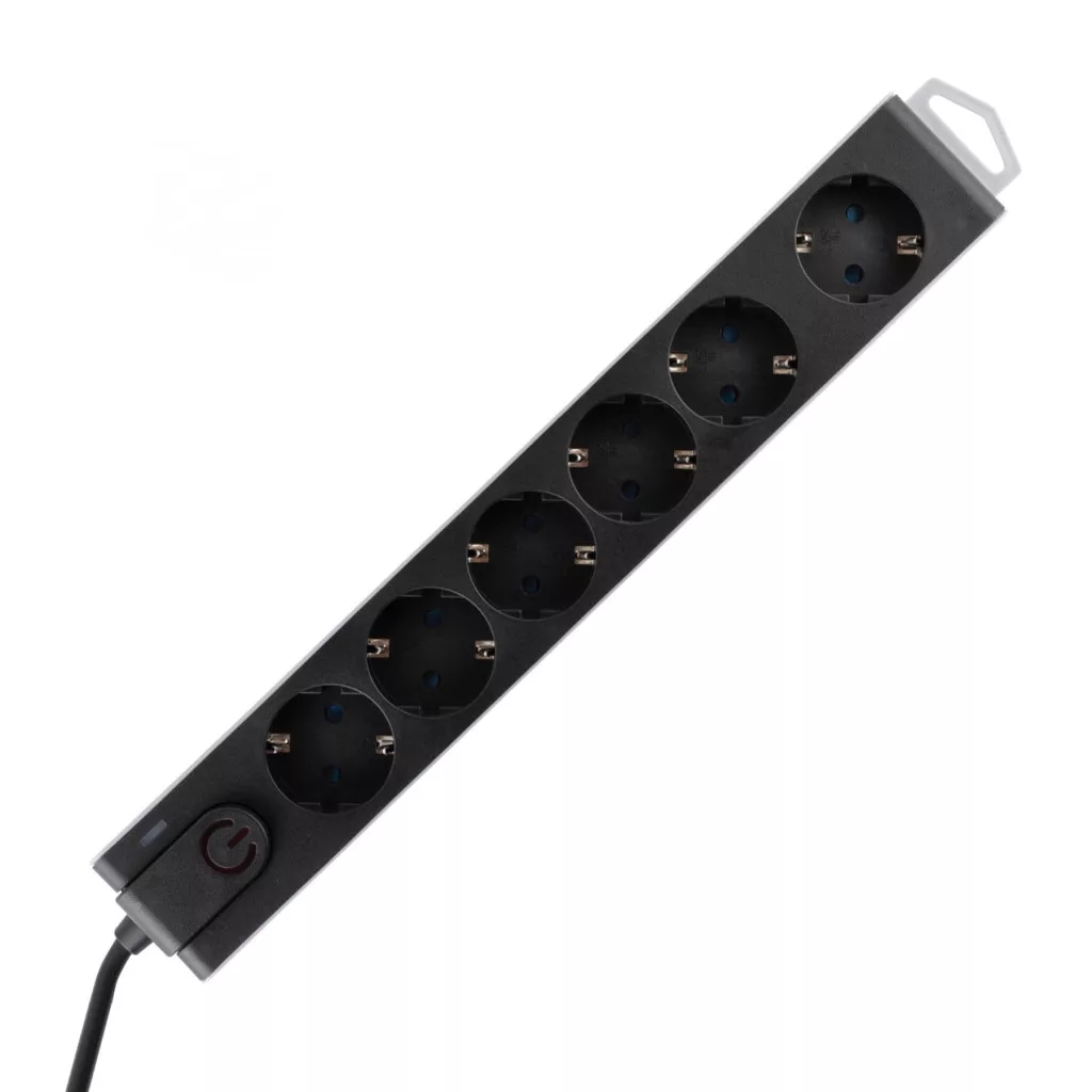 Ez az elosztó 6 aljzattal rendelkezik, amelyek mindegyike védőzsaluval ellátott, így maximális biztonságot nyújt az elektromos berendezéseinek. A túlfeszültségvédelem 3 kV-ig terjed, így megóvja készülékeit a hirtelen áramingadozásoktól. A világító főkapcsoló segítségével könnyedén ellenőrizheti, hogy az elosztó be van-e kapcsolva, továbbá felakasztható vagy kábelkötegelővel is rögzíthető, így helytakarékosan használható.