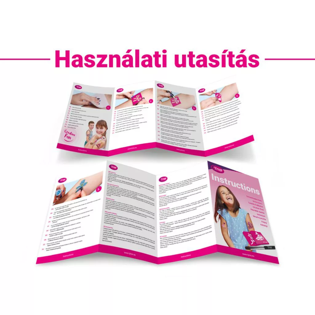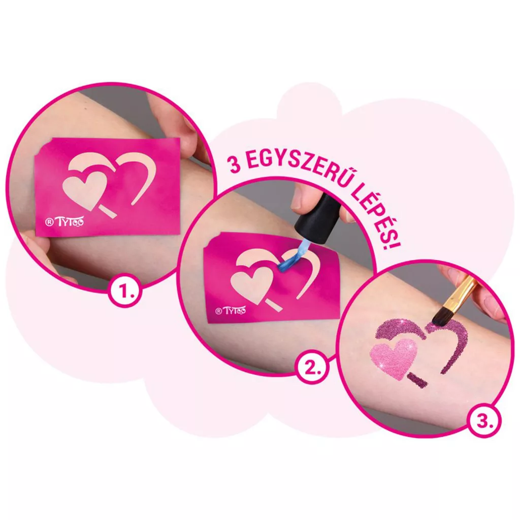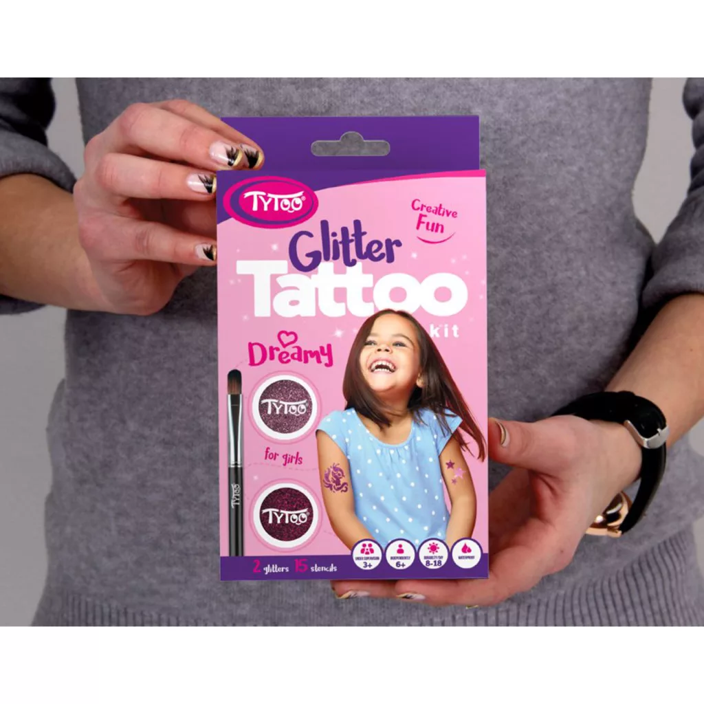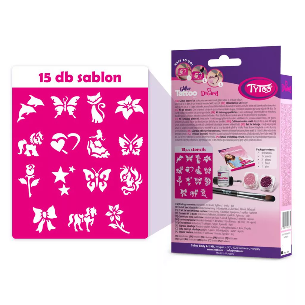 15 db heteken át tartó ragyogó csillámtetoválást készíthet kislányoknak, egyszerűen. A szettben mindent megtalál a tetkók elkészítéséhez. Kifejezetten 3-12 éves kislányoknak tervezték, amelyben virágos és pillangós mintákat talál. A TyToo csillámtetoválást a gyermekek is biztonságosan használhatják, ugyanis kozmetikai minőségű anyagokat tartalmaz, ami megfelel az EU szabályoknak. Alkalmazása egyszerű, akár egy 6 éves kisgyermek is el tudja magának készíteni a saját csillámtetkóját. Ráadásul az alkotás közben még a készségeit is fejlesztheti. A szett tele van virágos, pillangós sablonokkal, melyek kifejezetten gyermeke pici karjára lettek tervezve. Így akár saját magának is könnyedén elkészítheti az apró szikrázó tetkóit, de közösen szórakozva még jobb móka lehet számára!