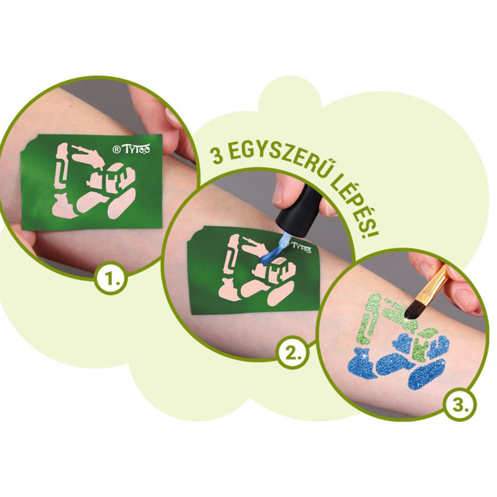 15 db heteken át tartó ragyogó csillámtetoválást készíthet kisfiúknak, egyszerűen. A szettben mindent megtalál a tetkók elkészítéséhez. Kifejezetten 3-12 éves kisfiúknak tervezték, amelyben markoló, traktor, kamion, tank, rakéta és még sok más jármű mintákat talál. A TyToo csillámtetoválást a gyermekek is biztonságosan használhatják, ugyanis kozmetikai minőségű anyagokat tartalmaz, ami megfelel az EU szabályoknak. Alkalmazása egyszerű, akár egy 6 éves kisgyermek is el tudja magának készíteni a saját csillámtetkóját. Ráadásul az alkotás közben még a készségeit is fejlesztheti. A sablonok kifejezetten gyermeke pici karjára lettek tervezve. Így akár saját magának is könnyedén elkészítheti az apró szikrázó tetkóit, de közösen szórakozva még jobb móka lehet számára!