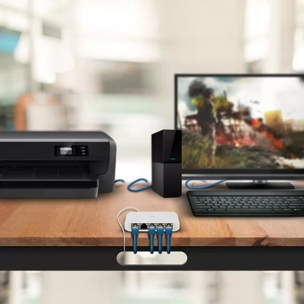 The Switch Flex Mini (USW Flex Mini) is a fully managed, Layer 2 switch with (5) GbE RJ45 ports, including (1) 802.3af PoE input. The USW Flex Mini can be powered with either PoE (via Port 1) or its included USB-C power adapter*. This switch can also be monitored or configured from anywhere with the powerful, intuitive UniFi Network web application and mobile app.