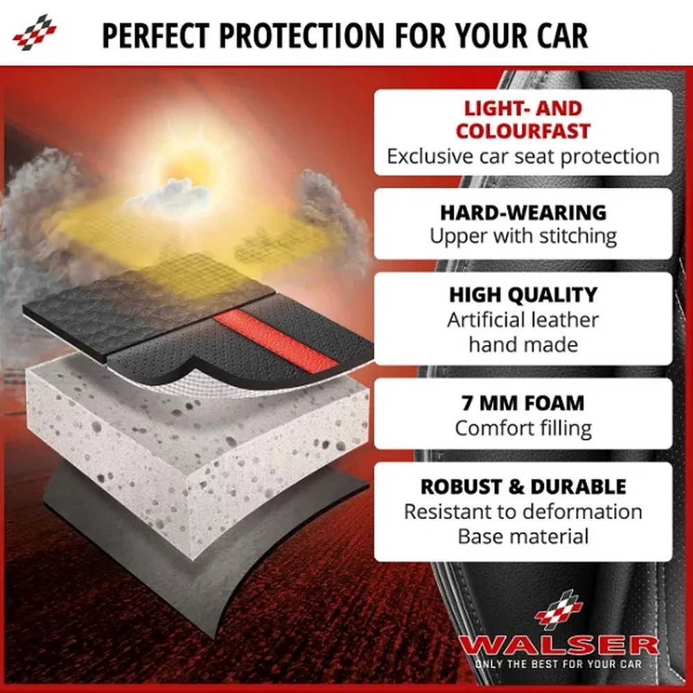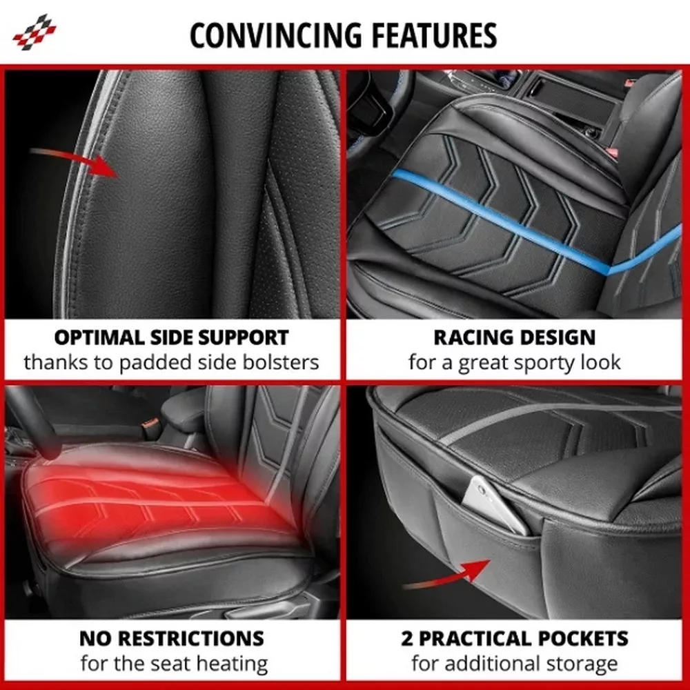 Prémium minőségű szintetikus bőr! Kompatibilis az integrált ülésfűtéssel! Oldallégzsákkal felszerelt járművek esetén a TÜV tanúsítvány garantálja a biztonságot. 24 hónap garancia!