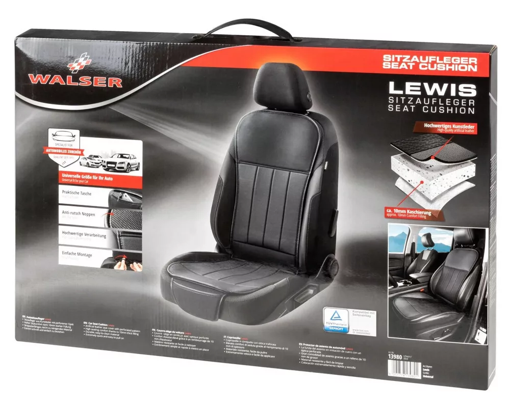A Lewis 12 mm-es béléssel rendelkezik, amely minden utazásnál megnöveli az üléskényelmet, és beépített oldallégzsákkal ellátott autóülésekhez is alkalmas. Az üléshuzat felszerelése nagyon gyors és egyszerű: a terméket pattintóval rögzítjük a fejtámla köré, majd műanyag rögzítőtárcsákkal rögzítjük a háttámla és az ülés talpa közé, és kampókkal a helyére húzzuk az ülés alá. A termék kíméletes ápolásához és tisztításához javasoljuk, hogy nedves ruhával tisztítsa meg.
