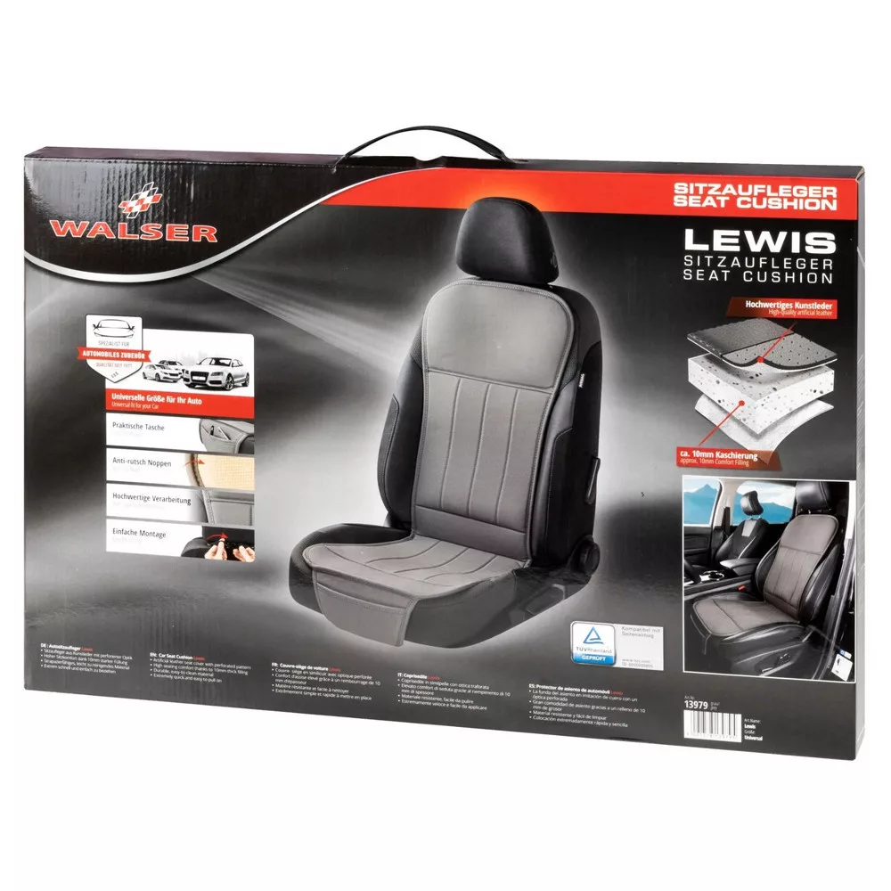 A Lewis 12 mm-es béléssel rendelkezik, amely minden utazásnál megnöveli az üléskényelmet, és beépített oldallégzsákkal ellátott autóülésekhez is alkalmas. Az üléshuzat felszerelése nagyon gyors és egyszerű: a terméket pattintóval rögzítjük a fejtámla köré, majd műanyag rögzítőtárcsákkal rögzítjük a háttámla és az ülés talpa közé, és kampókkal a helyére húzzuk az ülés alá. A termék kíméletes ápolásához és tisztításához javasoljuk, hogy nedves ruhával tisztítsa meg.