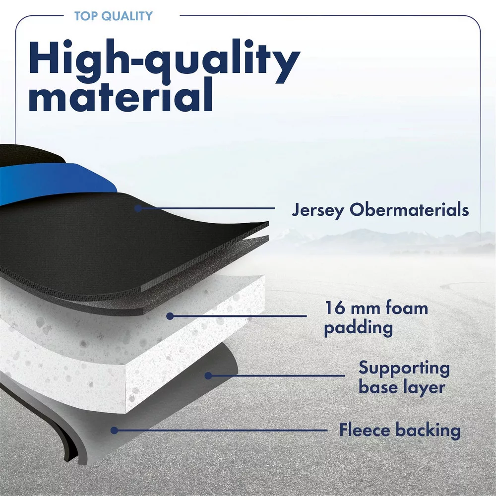 Ez a klasszikus színű üléshuzat különösen ellenálló anyagokból készült, így nemcsak kényelmesen ülhet, hanem időt takaríthat meg a tisztításon és a karbantartáson. Ennek eredményeként szín- és fakulásálló, gyakori és erős használat után könnyen törölhető nedves ruhával. Így gyorsan ismét a volán mögé ülhet, és élvezheti ezt a kiváló minőségű üléspárnát. A gondos és kíméletes tisztításhoz és ápoláshoz a kézi mosást javasoljuk max. 40 °C-os meleg vízben, színes mosószerrel.
