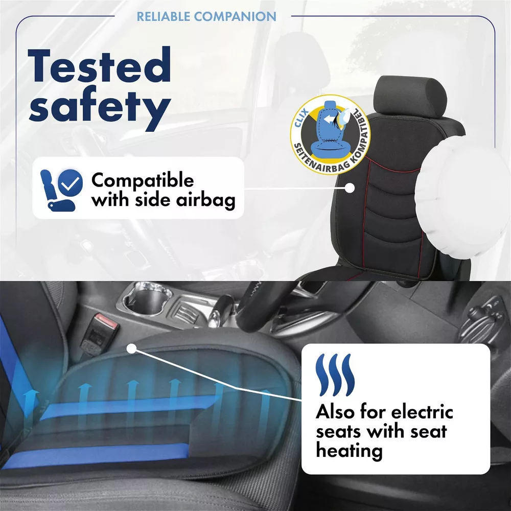 Kompatibilis az integrált ülésfűtéssel! Oldallégzsákkal felszerelt járművek esetén a TÜV tanúsítvány garantálja a biztonságot. 24 hónap garancia!