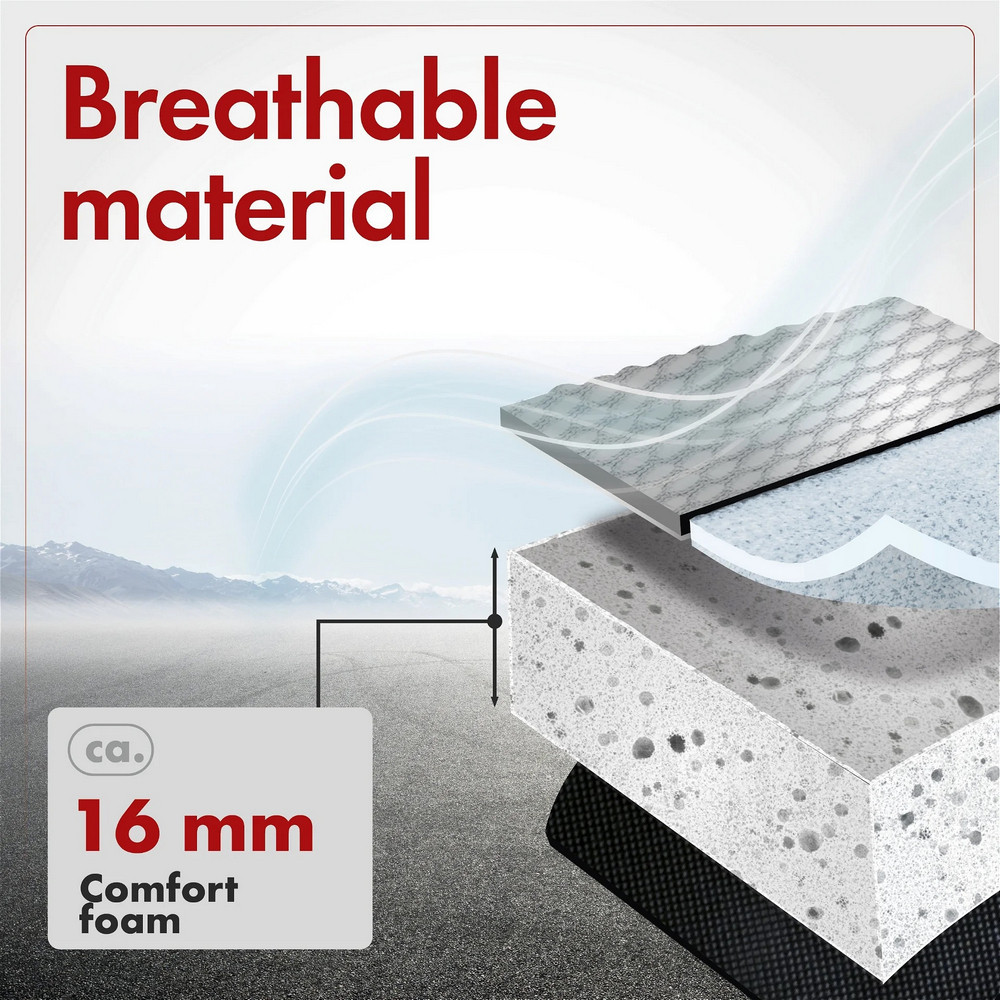 Ez a klasszikus színű üléshuzat különösen ellenálló anyagokból készült, így nemcsak kényelmesen ülhet, hanem időt takaríthat meg a tisztításon és a karbantartáson. Ennek eredményeként szín- és fakulásálló, gyakori és erős használat után könnyen törölhető nedves ruhával. Így gyorsan ismét a volán mögé ülhet, és élvezheti ezt a kiváló minőségű üléspárnát. A gondos és kíméletes tisztításhoz és ápoláshoz a kézi mosást javasoljuk max. 40 °C-os meleg vízben, színes mosószerrel.