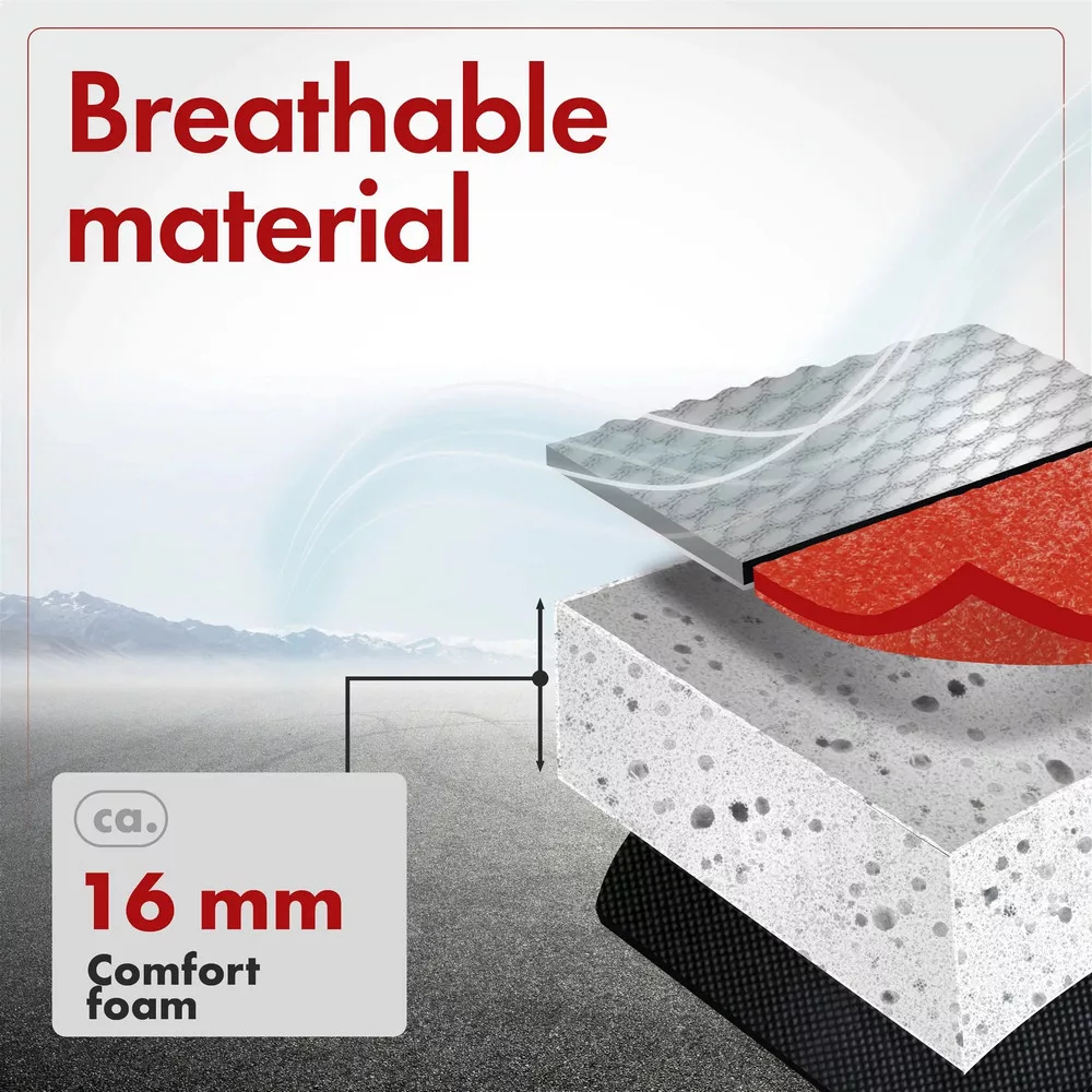 Ez a klasszikus színű üléshuzat különösen ellenálló anyagokból készült, így nemcsak kényelmesen ülhet, hanem időt takaríthat meg a tisztításon és a karbantartáson. Ennek eredményeként szín- és fakulásálló, gyakori és erős használat után könnyen törölhető nedves ruhával. Így gyorsan ismét a volán mögé ülhet, és élvezheti ezt a kiváló minőségű üléspárnát. A gondos és kíméletes tisztításhoz és ápoláshoz a kézi mosást javasoljuk max. 40 °C-os meleg vízben, színes mosószerrel.