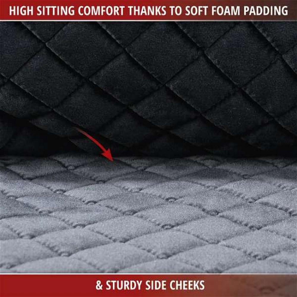 A fekete színű üléshuzat nemesen steppelt velúrból készült. Ez az anyag strapabíró, optimálisan védi az ülés és a háttámla felületét a kopástól, foltoktól, folyadékoktól és egyéb szennyeződésektől. Ugyanakkor a velúr üléshuzat kellemesen puhának érzi magát, és jól érzi magát. A 8 mm-es laminálás magas üléskényelmet és luxus vezetési élményt biztosít minden utazás során. Ezenkívül az üléspárna hátoldalát csúszásgátló bevonat borítja, amely megakadályozza a termék elcsúszását.