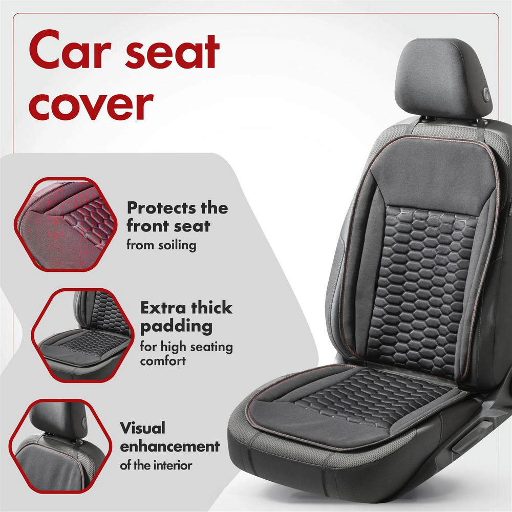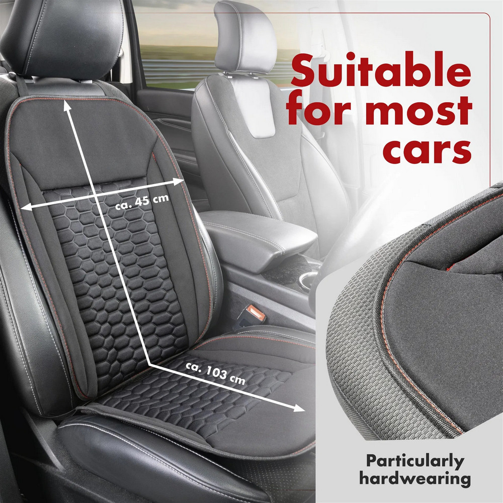Az ülésvédő kényelmes, 14 mm-es kárpitjával örömet fog okozni, amely minden autózást élvezetessé tesz. A modell nagyon könnyen beszerelhető az autóba. Gyorsan és egyszerűen rögzítheti a fejtámla és a háttámla körüli rugalmas szalaggal. Így a termék jól rögzül és állandóan kényelmesen ülhet rövid-hosszabb autózások során. Ezenkívül a termék integrált oldallégzsákkal ellátott járművekhez is alkalmas.