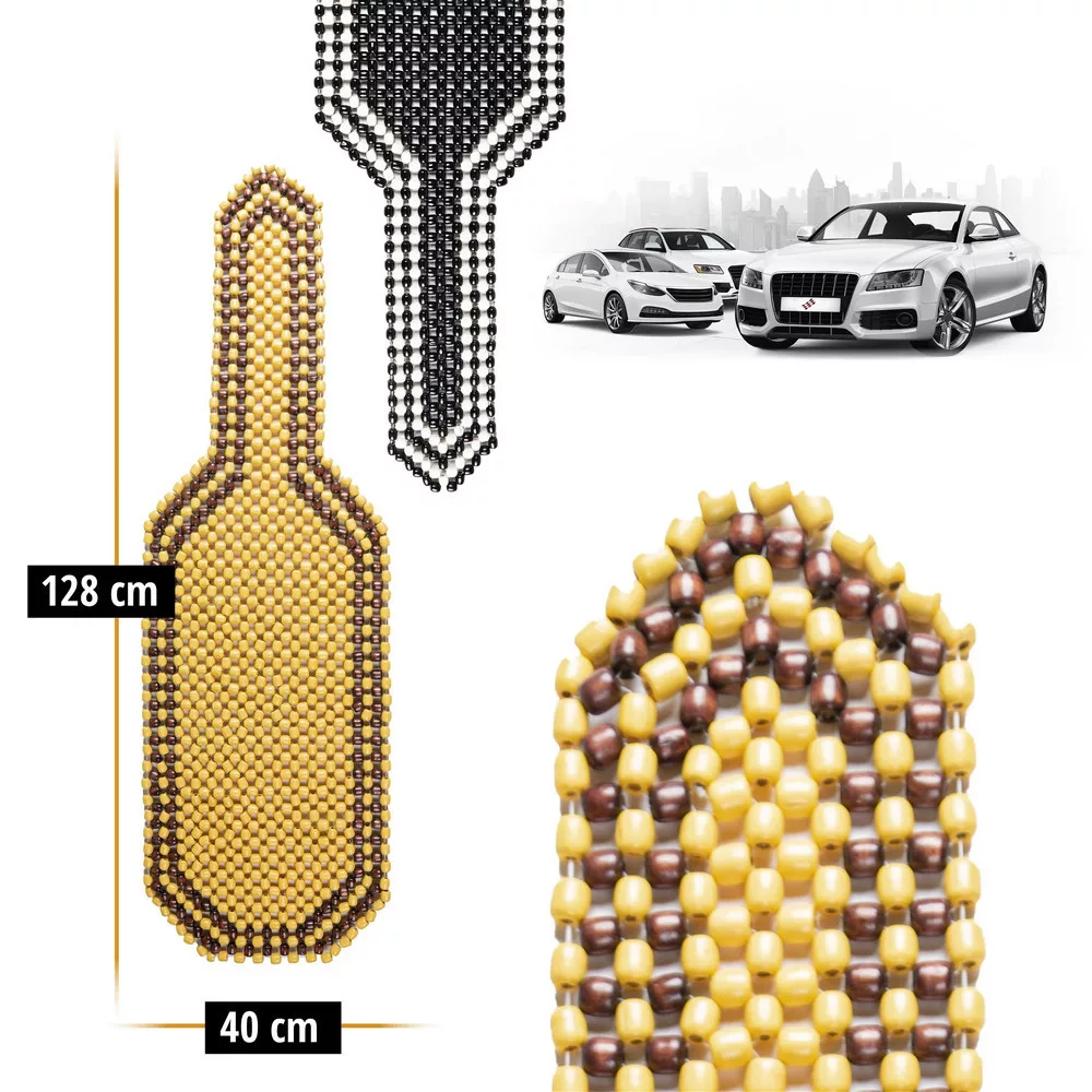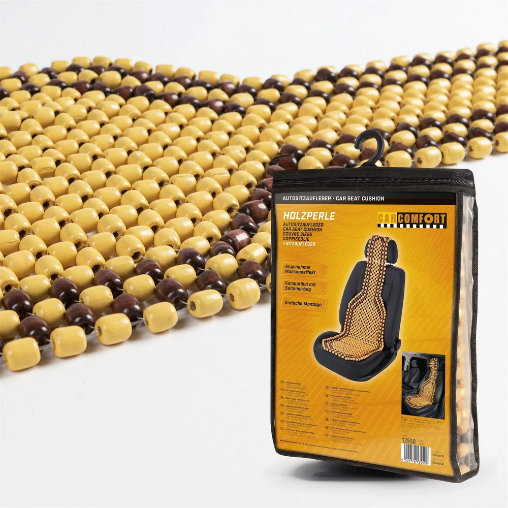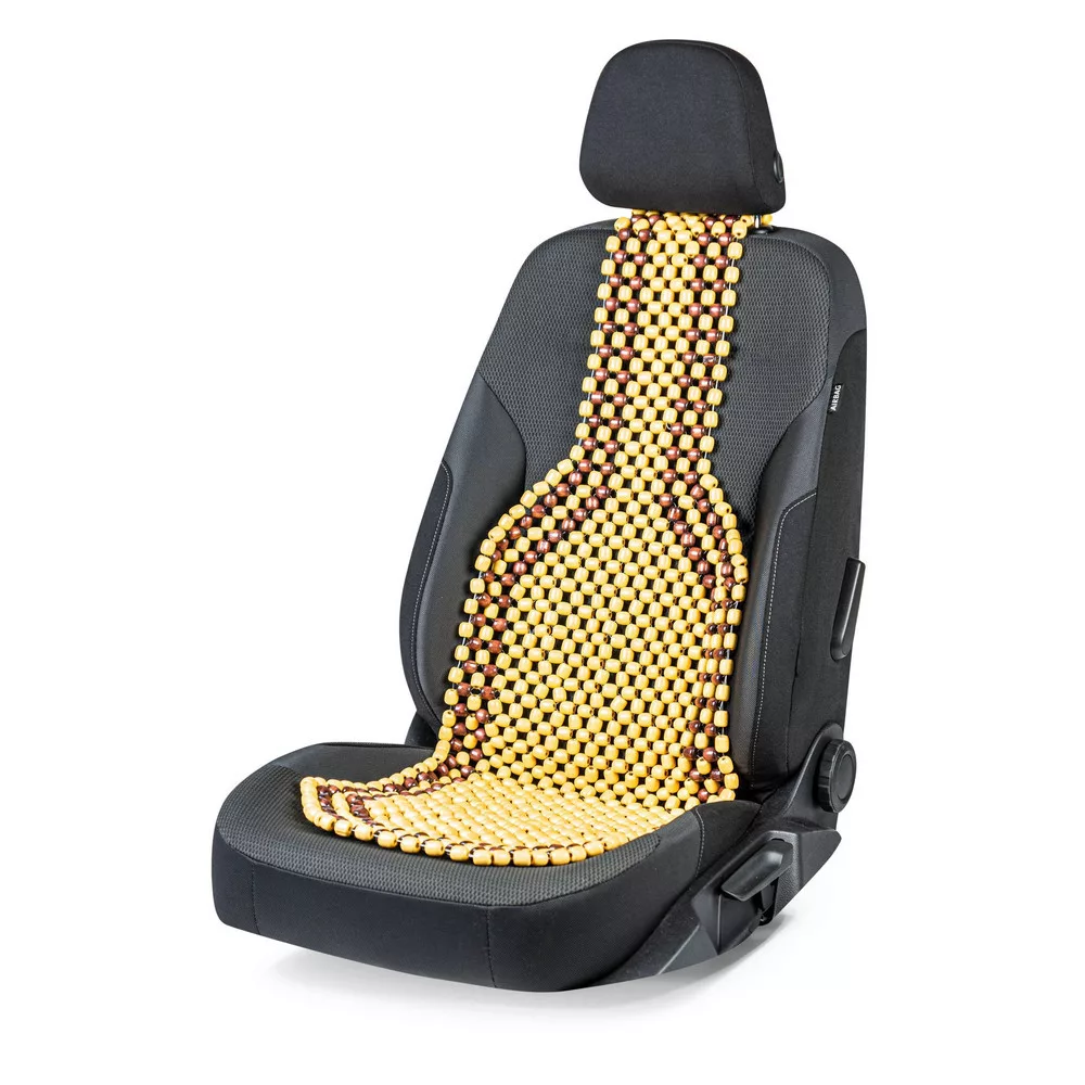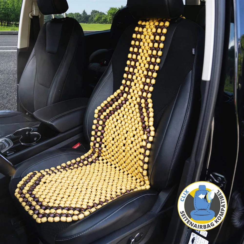 Az ülésvédő nagy fagyöngyökből áll, az üléstől a fejtámláig nyúlnak. A nagy gyöngyök a feszült és fáradt izmokat masszírozzák és kellemessé tesznek minden utazást. A gyöngyök 100%-ban természetes fából állnak! Az üléshuzat minden elterjedt oldallégzsákos és anélküli járműhöz alkalmas.