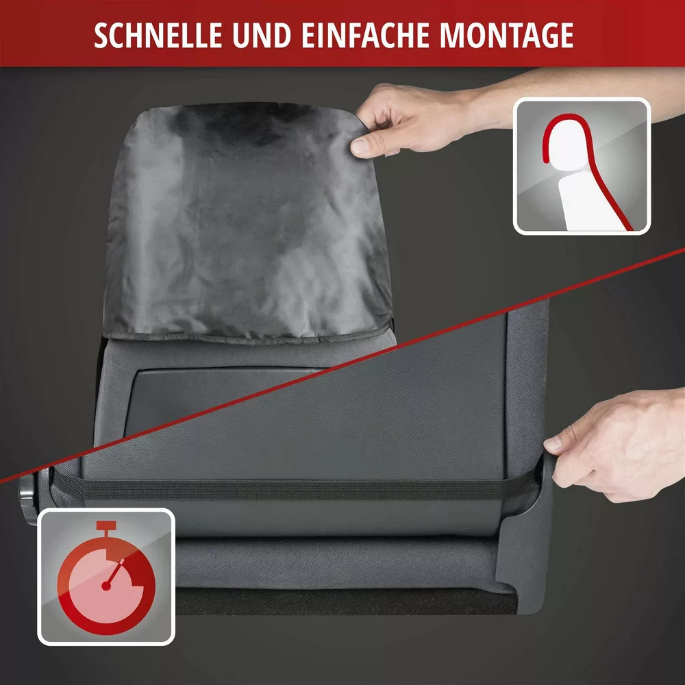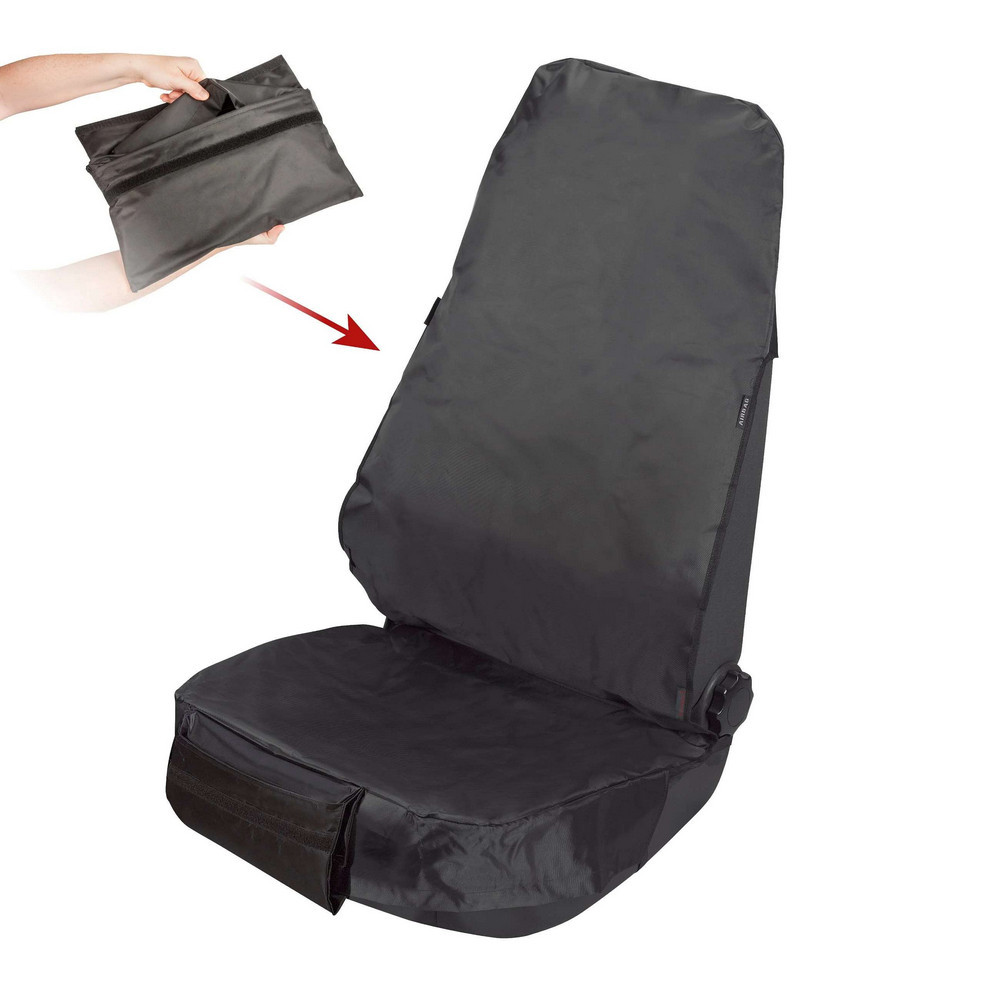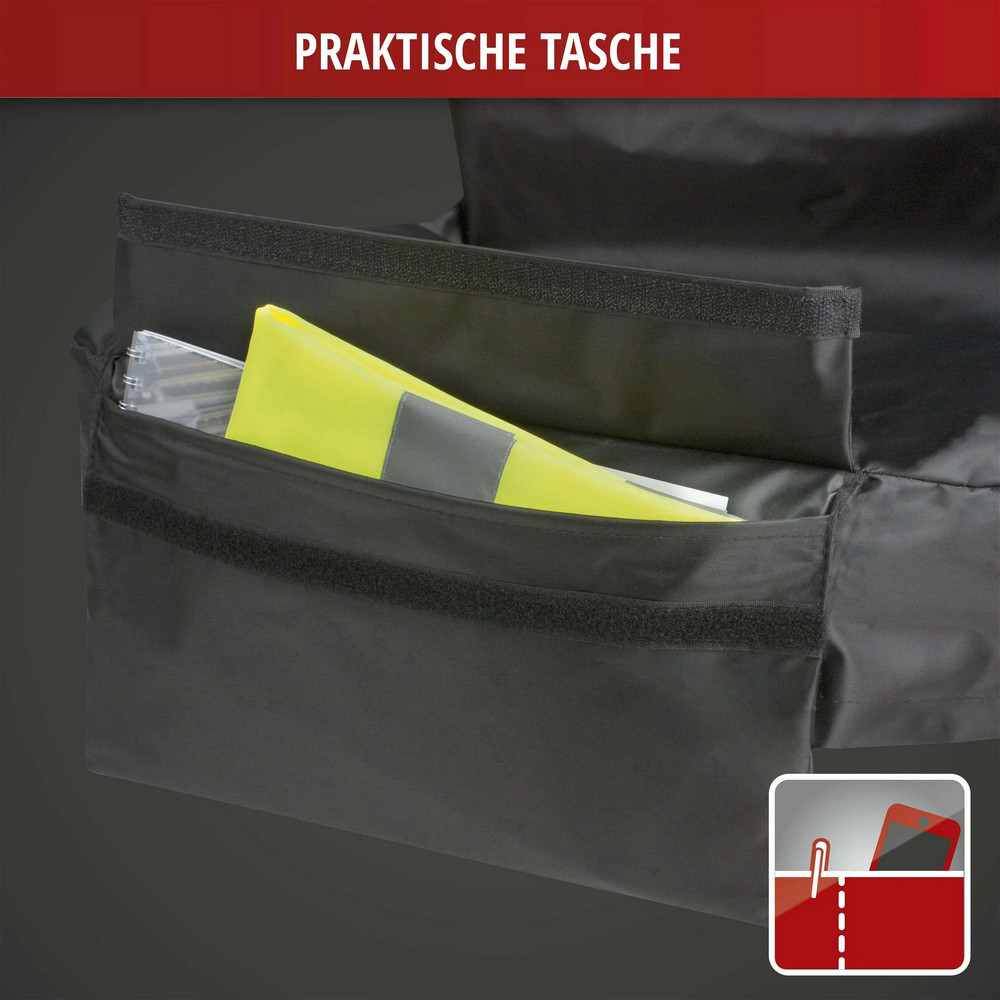 A tépózáras tárolózseb lehetővé teszi akár kisebb szerszámok elhelyezését is. Használaton kívül összehajtható és a felvarrt táskában tárolható. Így mindig kéznél van az ülésvédő huzat, ha szükség lenne rá.