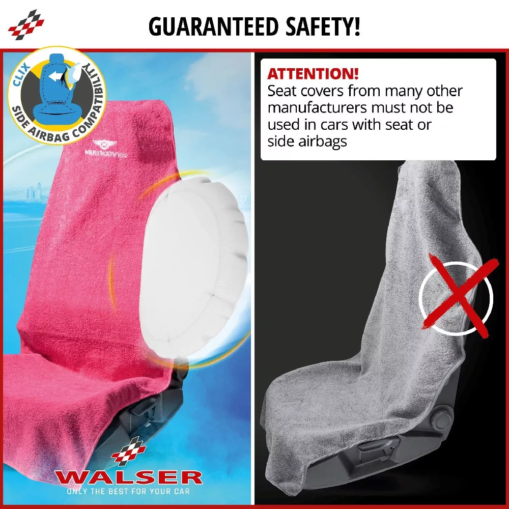 A Multicover kiváló minőségű 100% poliészterből készült, és 30 °C-on mosható. A pihe-puha anyag légáteresztő és különösen nedvszívó, ezért jól felszívja a vizet és szárazon tartja a környezetet. Ezenkívül a Multicover alkalmas integrált oldallégzsákokkal ellátott autóülésekhez.