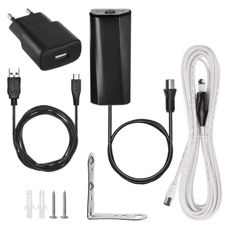 5G szűrő: igen|a csatlakozó típusa: F, IEC|ajánlott telepítési távolság a TV-toronytól: 0–80 km (falu)|a kimenő jel maximális teljesítménye: nincs megadva|a koaxiális kábel hossza a csomagban: 5 m|alkalmas lakókocsihoz: igen|csatlakozók száma a csomagban: nincs megadva|elemek száma: 10|előre-hátra viszony: nincs megadva|erősítő: külső, alacsony zajszintű erősítő külön forrással|értékesítési csomagolás: 1 db, doboz|frekvenciasávok: UHF|frekvenciatartomány: 470–698 MHz|full HD adások vételére alkalmas: igen|használat: beltéri/kültéri|jelvétel: DVB-T/T2|kimeneti RF impedancia: 75 Ohm|LTE szűrő: igen|méretek: 315 × 215 × 200 mm|polarizáció: vízszintes és függőleges|STB által tölthető: igen|táplálás: DC USB 5 V/550 mA (tartozék)|távoli vételre alkalmas: igen|telepítés: nincs megadva|teljes fém testű erősítő, zavarral szemben ellenálló: nincs megadva|teljesítményfokozás vezérlés: nem|több adó vételére alkalmas: igen|vételi szög: 30°/40°
