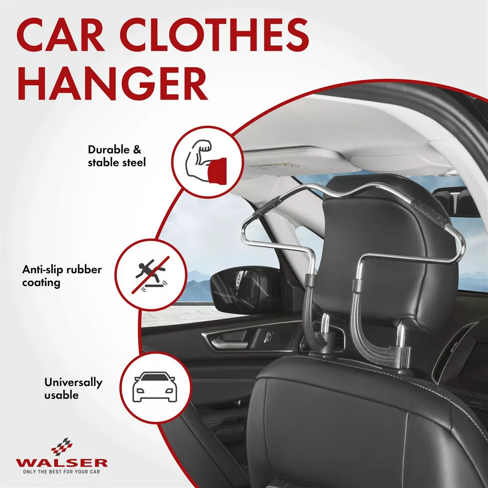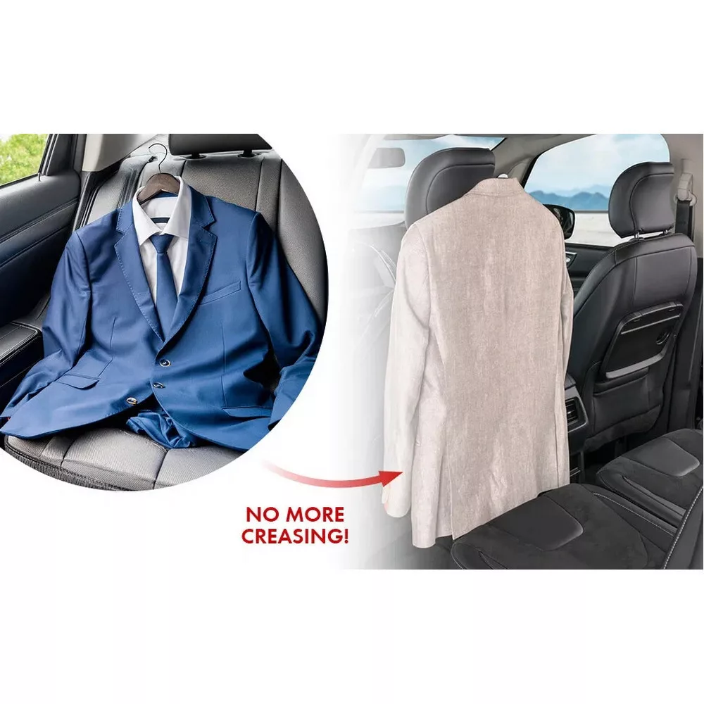 Az univerzális autós ruhaakasztó ideális módja az öltönyök, ingek és kabátok szállítására. Élvezze a tökéletes öltözet örömét – még egy hosszú utazás után is Az autós ruhaakasztóval a ráncos üzleti ruhák a múlté lesznek. Ez a praktikus segédeszköz a mindennapi élethez tökéletes kísérője az autós utazásoknak üzleti találkozókra, és biztosítja, hogy ráncmentes ruhát viseljen. A függő szállításnak köszönhetően még frissen vasalt kabátokkal vagy blúzokkal és egyéb ruhadarabokkal érkezik meg úti céljára. A ruhaakasztóval gyűrődés nélkül felakaszthatja üzleti gardróbját az autóban, így tökéletes benyomást keltve ügyfelei körében.