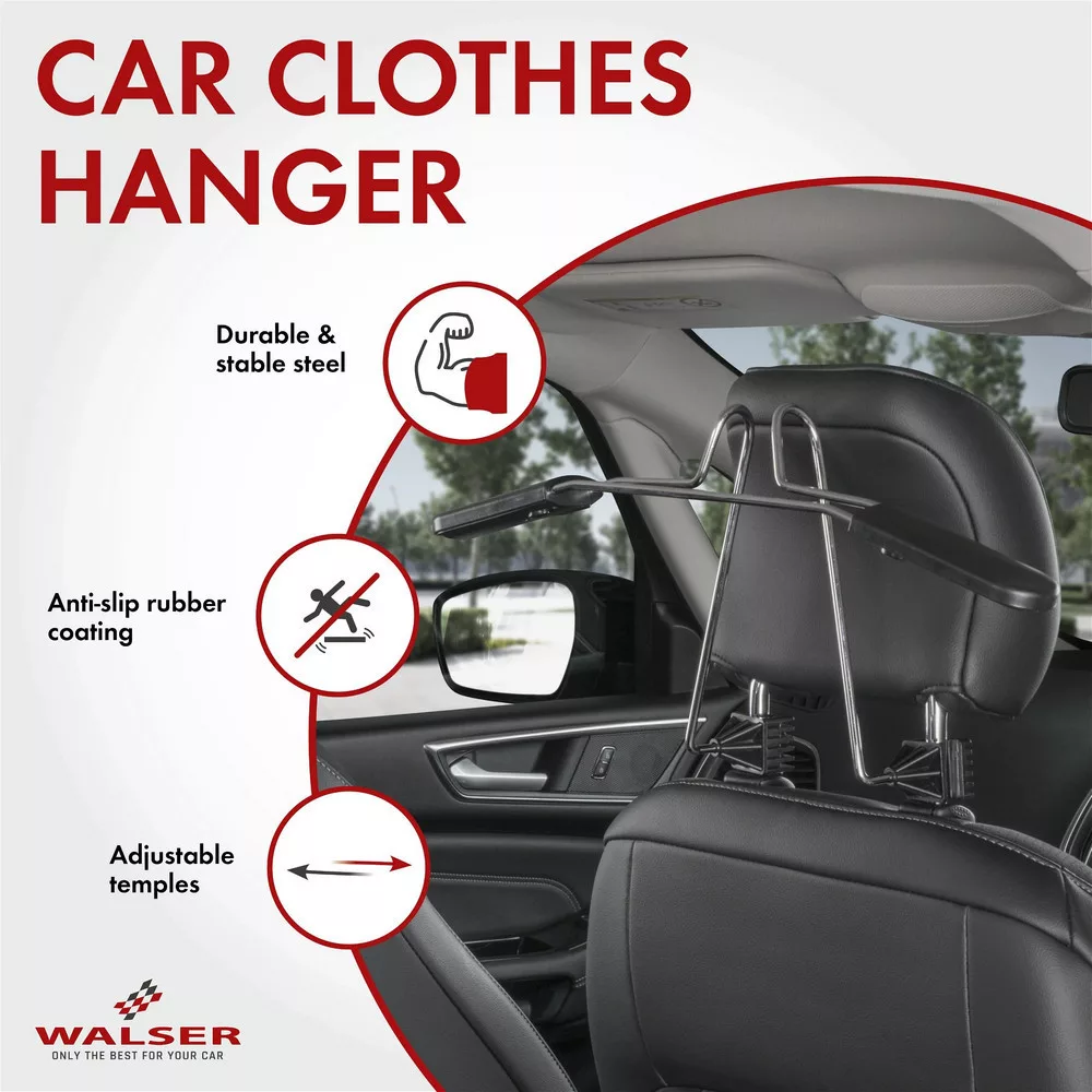 Az univerzális autós ruhaakasztó ideális módja az öltönyök, ingek és kabátok szállítására. Élvezze a tökéletes öltözet örömét – még egy hosszú utazás után is Az autós ruhaakasztóval a ráncos üzleti ruhák a múlté lesznek. Ez a praktikus segédeszköz a mindennapi élethez tökéletes kísérője az autós utazásoknak üzleti találkozókra, és biztosítja, hogy ráncmentes ruhát viseljen. A függő szállításnak köszönhetően még frissen vasalt kabátokkal vagy blúzokkal és egyéb ruhadarabokkal érkezik meg úti céljára. A ruhaakasztóval gyűrődés nélkül felakaszthatja üzleti gardróbját az autóban, így tökéletes benyomást keltve ügyfelei körében.
