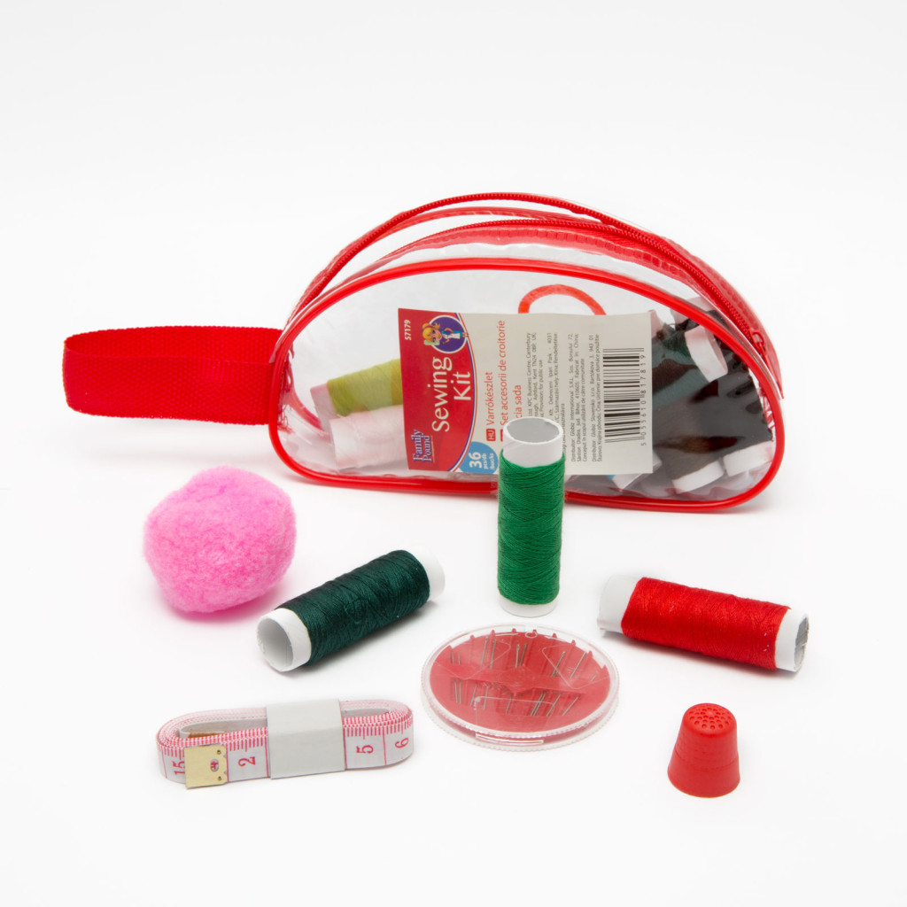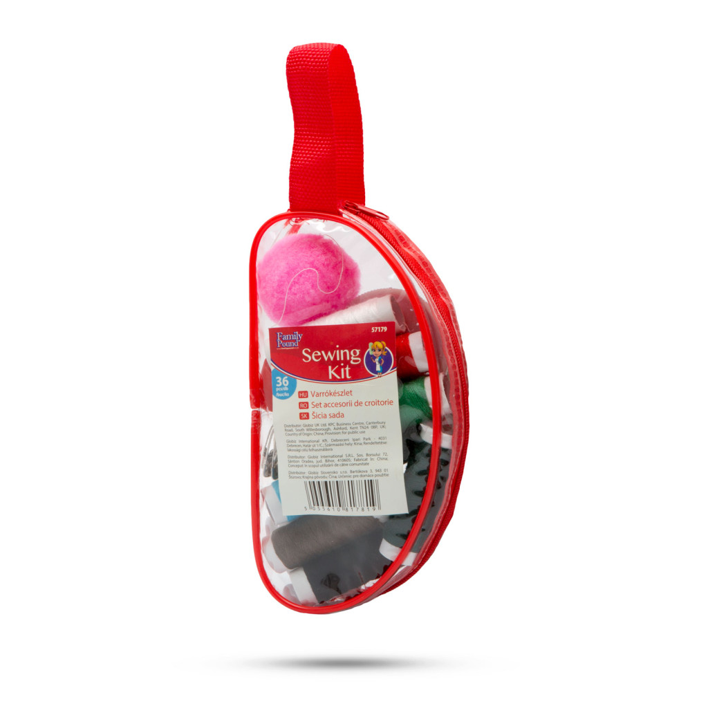Sokrészes komplett varrókészlet. Hasznos kelléke lehet otthonának. 12 féle színű cérnával, utazóollóval, 10 biztosítótűvel (2,5 cm), 60 cm-es mérőszalaggal, 10 db varrótűvel, 4 tartozék fehér gombbal, műanyag gyűszűvel a balesetek megelőzése érdekében, valamint rózsaszín tűpárnával egy cipzáros táskában.