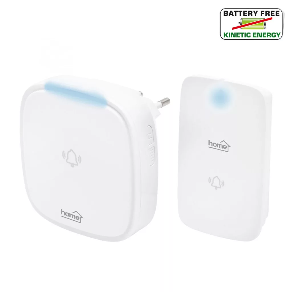 A Home DBK 1500AC csengő egyik legkiemelkedőbb tulajdonsága, hogy soha nem igényel elemet. A kinetikus nyomógomb a működéshez szükséges energiát saját mozgásából generálja, ami egyszerre kényelmes és környezetkímélő megoldás. A technológia garantálja a megbízható működést hideg időjárási körülmények között is.