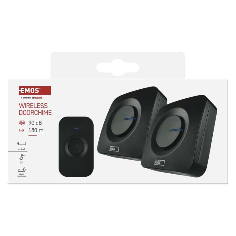 a főegység tápellátása: 3× 1,5 V AAA (nem tartozék)|a gomb tápellátása: 1× 12 V A23 (tartozék)|alkalmazási nyelvek: –|a nyomógombok száma a csomagolásban: 1 db|a vevők száma a csomagolásban: 2 darab|csengő méretek: 26 × 81 × 81 mm|dallamok száma: 52|egyéb funkciók: –|értékesítési csomagolás: 1 db, bliszter|értesítések a mobilalkalmazáshoz: nem|hangalapú asszisztensek általi vezérlés: nem|hangerőszabályzó: igen, 5 szint|hangkommunikáció: nem|hatótávolság: 180 m|jelátviteli frekvencia: 433 MHz|jelátviteli módszer: vezeték nélküli csengő|kompatibilitás: –|másik gomb hozzáadásának opciója: igen, max. 6|maximális csengetési hangerő: 90 dB|nyomógomb méretek: 19 × 42 × 72 mm|optikai jelzés a csengőn: igen|optikai jelzés a nyomógombon: igen|párosítási módszer: automatikus párosítás–self-learning|protokoll: –|sorozat: –|speciális funkciók: nem|szerelési anyag: –|szín: fekete|támogatott OS: –|tartalék (pót) nyomógomb: P5728T|vízálló gomb: IP56