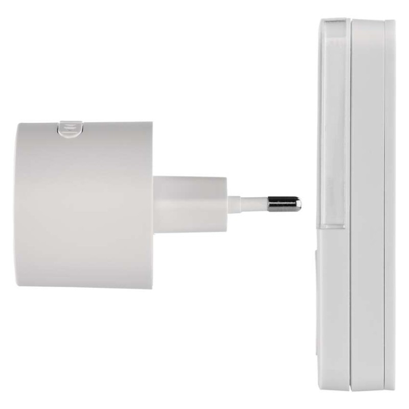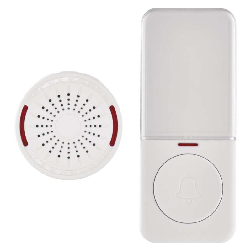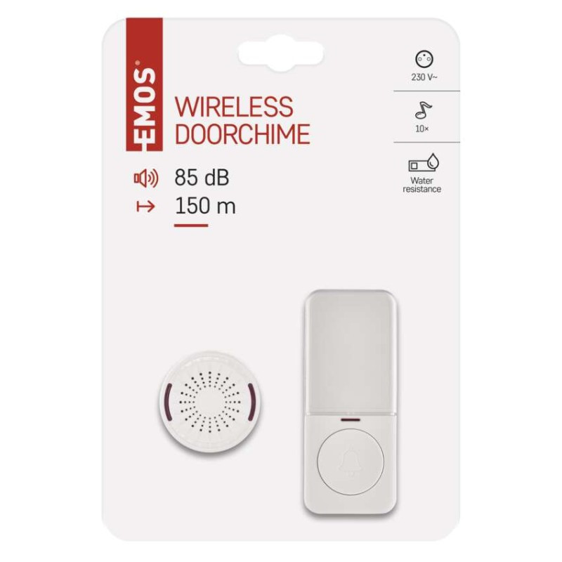 a főegység tápellátása: 230 V AC|a gomb tápellátása: 1× 3 V CR2032 (tartozék)|alkalmazási nyelvek: –|a nyomógombok száma a csomagolásban: 1 db|a vevők száma a csomagolásban: 1 db|csengő méretek: 72 × 42 × 42 mm|dallamok száma: 10|egyéb funkciók: –|értékesítési csomagolás: 1 db, bliszter|értesítések a mobilalkalmazáshoz: nem|hangalapú asszisztensek általi vezérlés: nem|hangerőszabályzó: igen, 5 szint|hangkommunikáció: nem|hatótávolság: 150 m|jelátviteli frekvencia: 433 MHz|jelátviteli módszer: vezeték nélküli csengő|kompatibilitás: –|másik gomb hozzáadásának opciója: igen, max. 8|maximális csengetési hangerő: 85 dB|nyomógomb méretek: 19 × 38 × 92 mm|optikai jelzés a csengőn: igen|optikai jelzés a nyomógombon: igen|párosítási módszer: automatikus párosítás–self-learning|protokoll: –|sorozat: –|speciális funkciók: nem|szerelési anyag: –|szín: fehér|támogatott OS: –|tartalék (pót) nyomógomb: P5734T|vízálló gomb: IP56