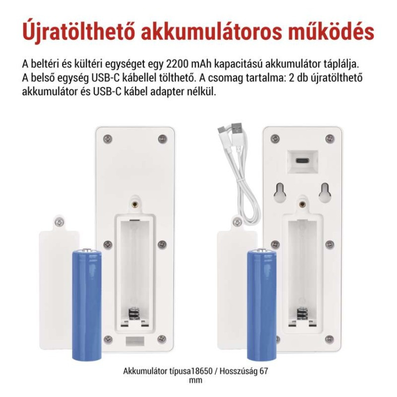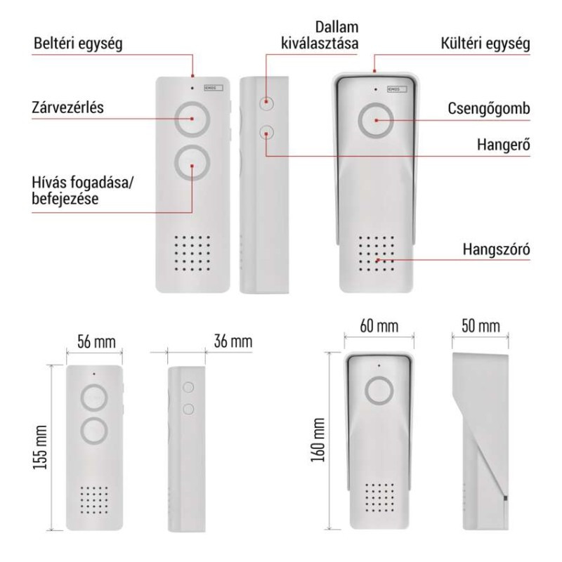 a csomagolás része: –|a fülhallgató anyaga: műanyag|a fülhallgató mérete: 155 × 56 × 36 mm|a nyomógombok és a beltéri egységek száma: 1|az ajtóállomás mérete: 160 × 60 × 50 mm|az ajtópanel anyaga: műanyag|dallamok száma: 8|értékesítési csomagolás: 1 db, kis papír doboz|fülhallgatók száma: –|hangerőszabályzó: igen|háttérvilágítású kijelző: nem|hely a névcímkéknek: igen|javasolt kábelezés: vezeték nélküli|szerelés: falra + állványra|szín: fehér|táplálás: Li-Ion akkumulátor 3,7 V/2 2200 mAh|tartozék tápegység: igen|termék: kaputelefon készlet|vezetékek száma (képernyő / zár / kapu): –|zár és kapunyitó vezérlése: csak ajtózár