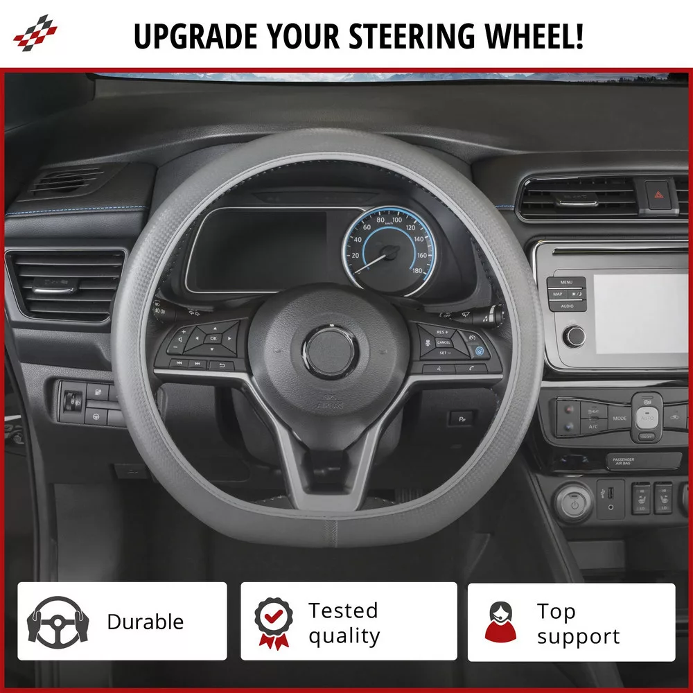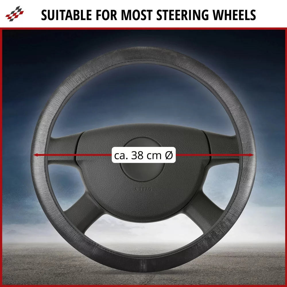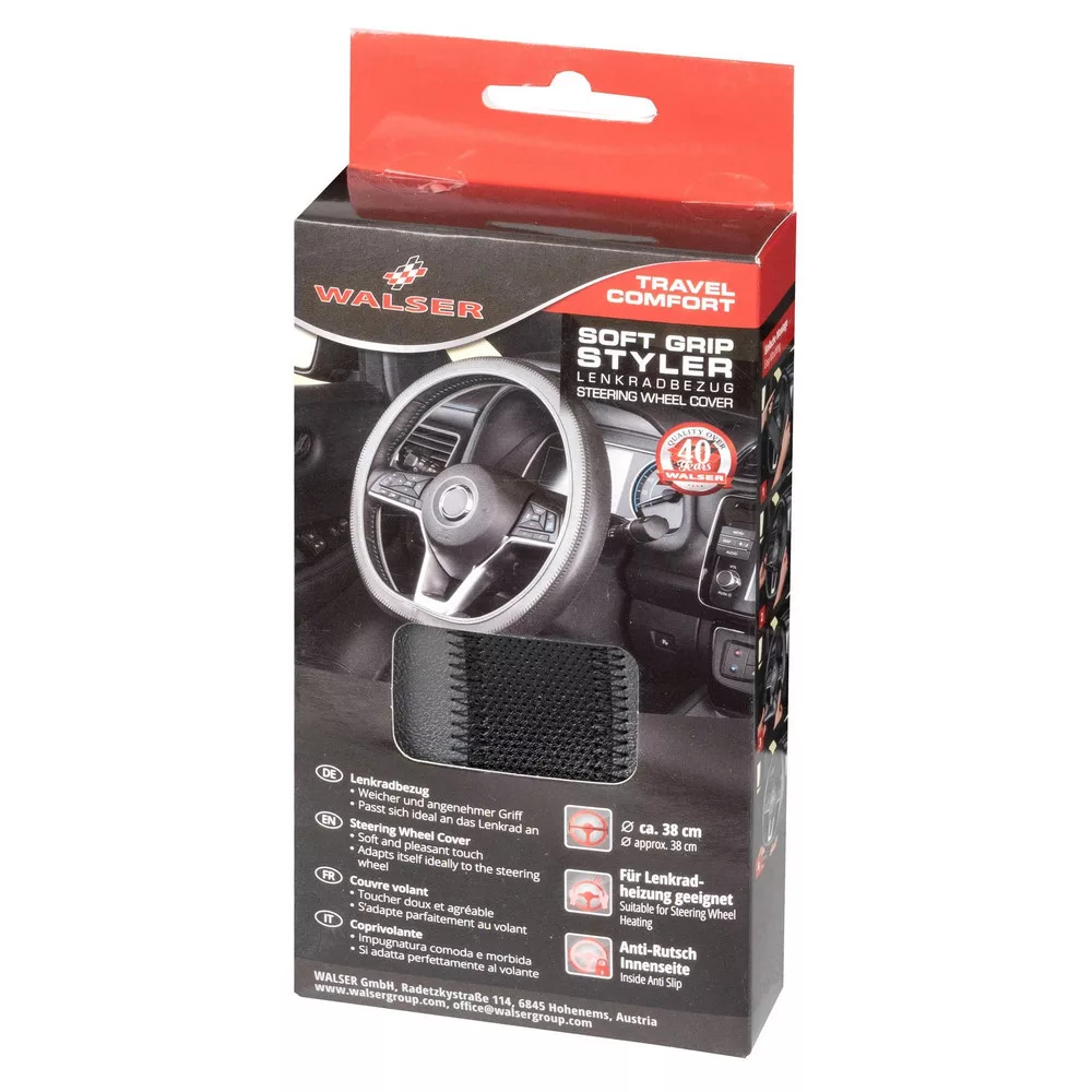 A Soft Grip kormánykerék-burkolat ideális termék a kormánykerék állandó erős fogásához, és autójának friss megjelenést kölcsönöz. Kiváló minőségű és mindenekelőtt rugalmas anyagból készült, amely tökéletesen illeszkedik a kormánykerékhez. A belső része csúszásgátló bevonattal rendelkezik, amely megakadályozza a csúszását. Kb. 38 cm átmérőjű kormánykerekekhez alkalmas, és integrált kormánykerék-fűtéshez is használható. A rugalmas anyag lehetővé teszi az egyszerű és gyors felszerelését kerek és lapos kormánykerekekre is. Helyezze a kormánykerék tetejére, majd feszítse lefelé a teljes kerékre. Úgy illeszkedik, mintha egy második bőr lenne.