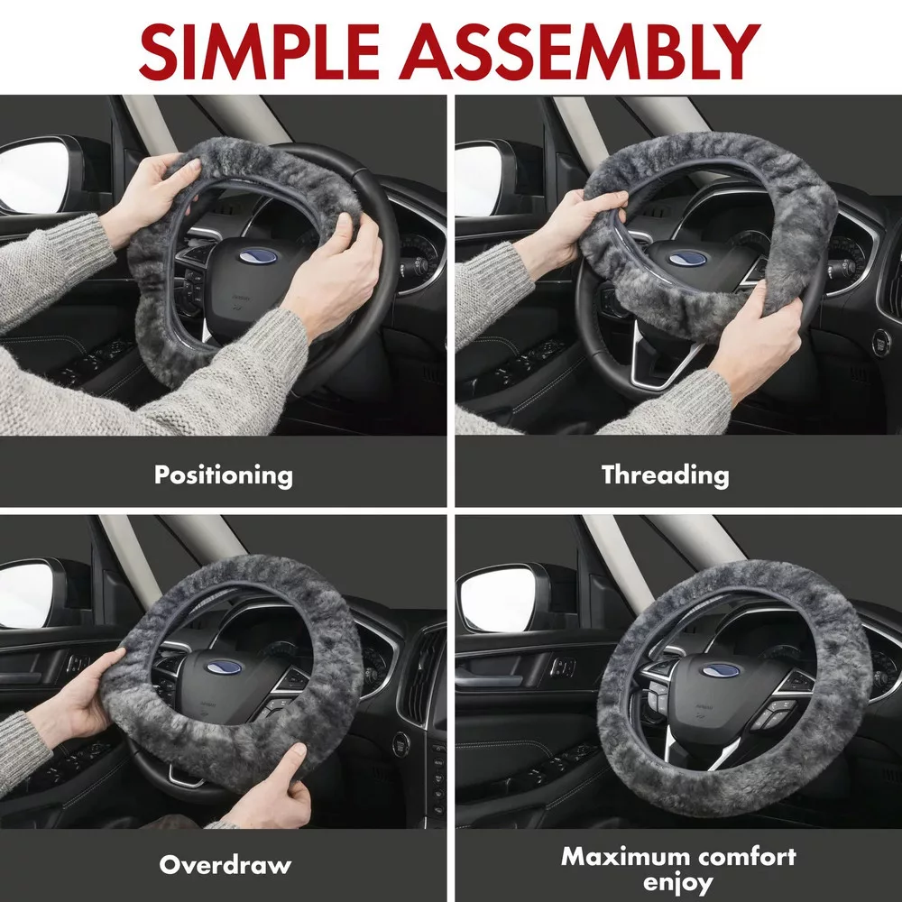 A fekete színű báránybőr kormányburkolat rendkívül kellemes, érezhetően puha gyapjú tapintású. A kormánykerék burkolata lehetővé teszi a kormánykerék funkcionális és vizuális fejlesztését, elegáns dizájn új fényt és divatos, frissítő belső megjelenést kölcsönöz járművének.