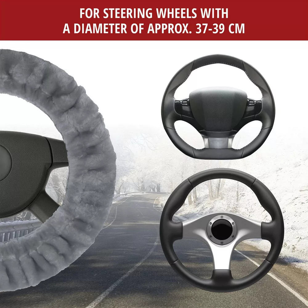 A kormánykerék borítása nagyon puha műszőrméből készült, és meggyőző, első osztályú kidolgozással. A rugalmas kötéses kialakításnak köszönhetően a kormányburkolat minden kormánykerékre felszerelhető kb. Ø37-39 cm. Így a burkolat alkalmas a legtöbb kormánykerék méretére, és gyorsan felmelegíti a kezét télen.