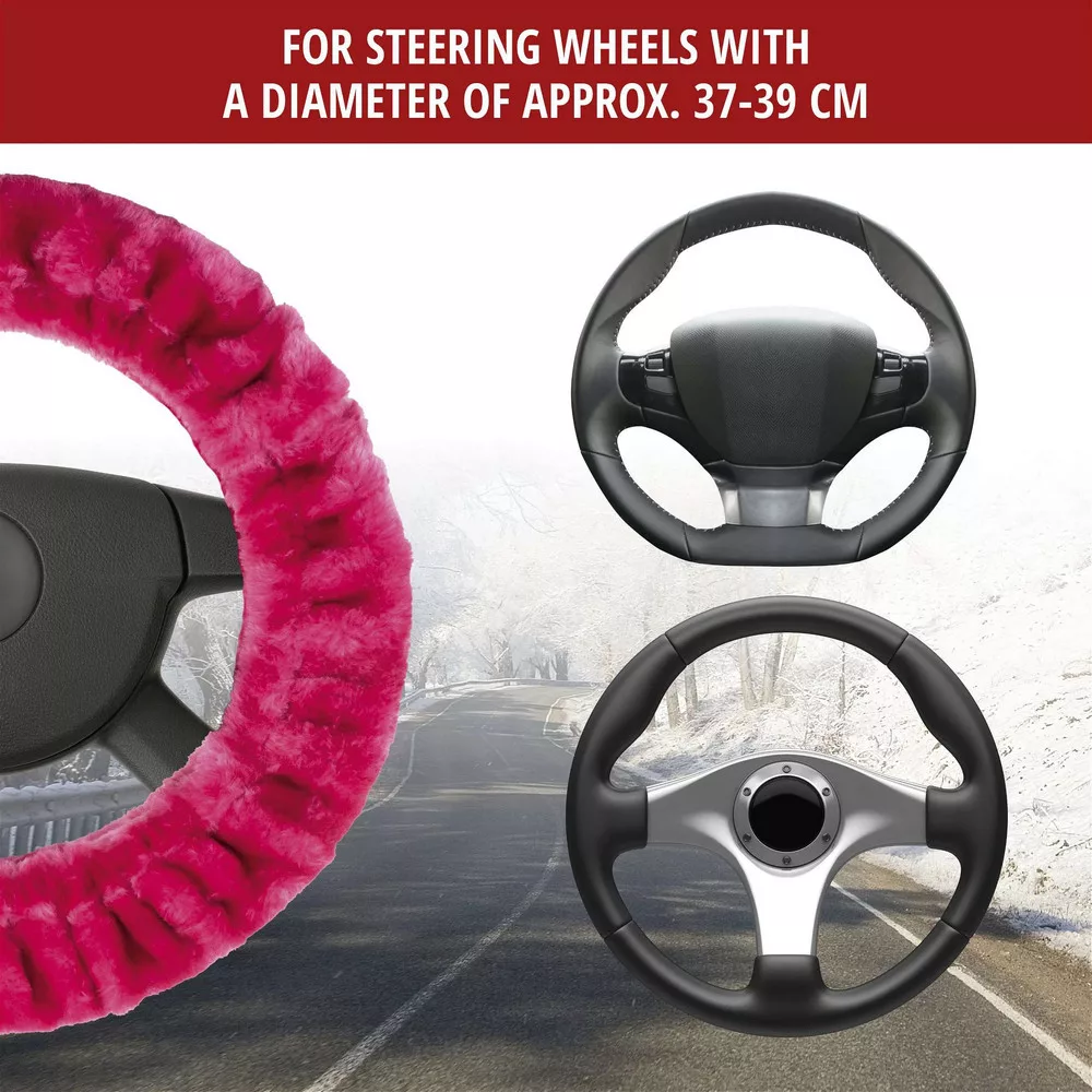 A kormánykerék borítása nagyon puha műszőrméből készült, és meggyőző, első osztályú kidolgozással. A rugalmas kötéses kialakításnak köszönhetően a kormányburkolat minden kormánykerékre felszerelhető kb. Ø37-39 cm. Így a burkolat alkalmas a legtöbb kormánykerék méretére, és gyorsan felmelegíti a kezét télen.