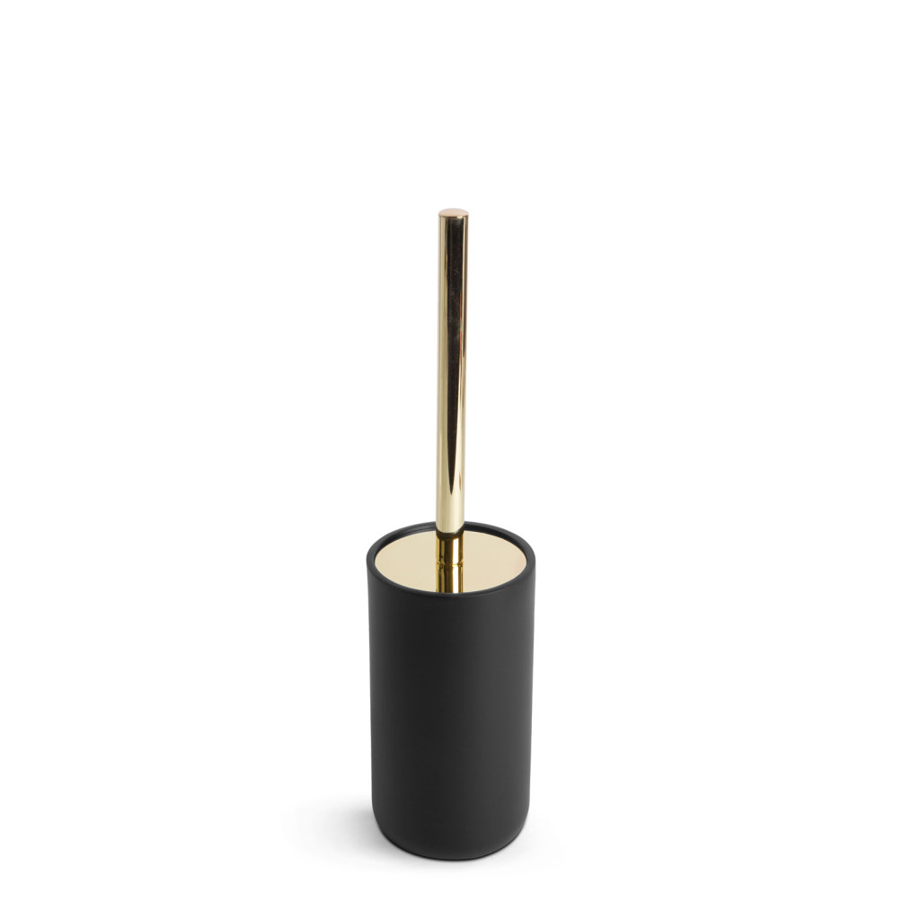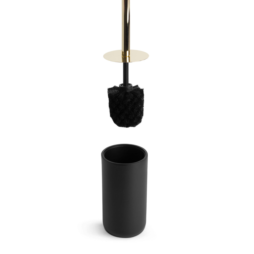 Az elegáns és praktikus WC-kefe + tartó szett matt fekete és arany színkombinációval teszi még vonzóbbá a fürdőszobát, illemhelyiséget. A gyanta anyagból készült tartó stabilitást és tartósságot nyújt a kefe számára. A kefe, fényes, arany színű fogantyúval rendelkezik, amely könnyedén használható és kényelmes fogást biztosít.