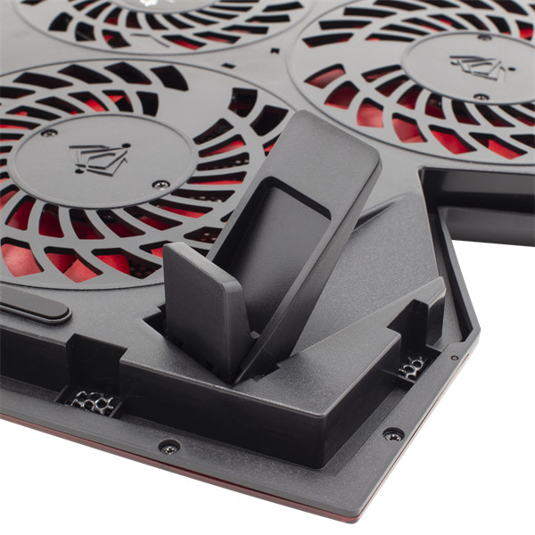 ICE WIZARD - laptop cooling pad, your enchanting solution for 17.3'' laptops. A whirlwind of power with 2400 RPM fans, casting only a hushed 30 dB. Seamlessly connect with the built-in USB hub. Crafted from resilient ABS and PC plastic, adorned with a metal mesh, it's a mere 800g. Revel in the synergy of 140mm and 70mm fans for a cooling masterpiece. With adjustable angles and a striking black-red design, command both style and performance. Your laptop's mystical guardian.