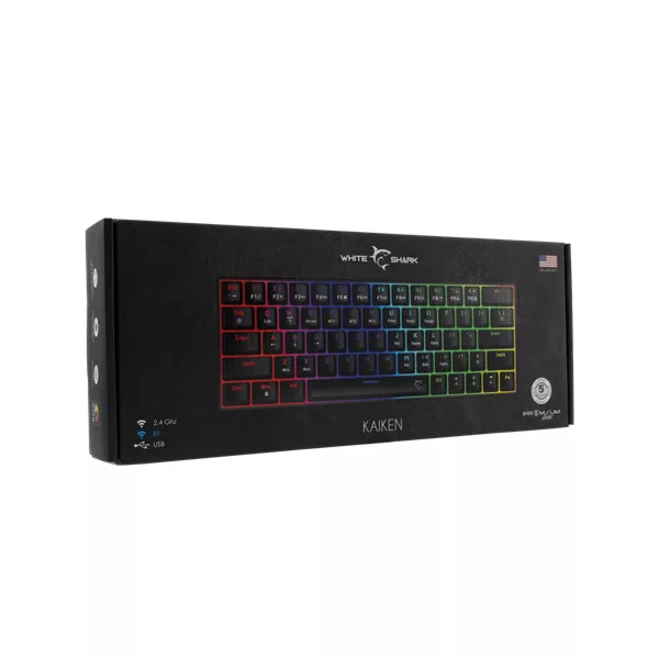 WHITE SHARK W029932 Premium KAIKEN-B/R-US vezeték nélküli mech. gamer billentyűzet, 63 piros kapcs. fekete (angol)