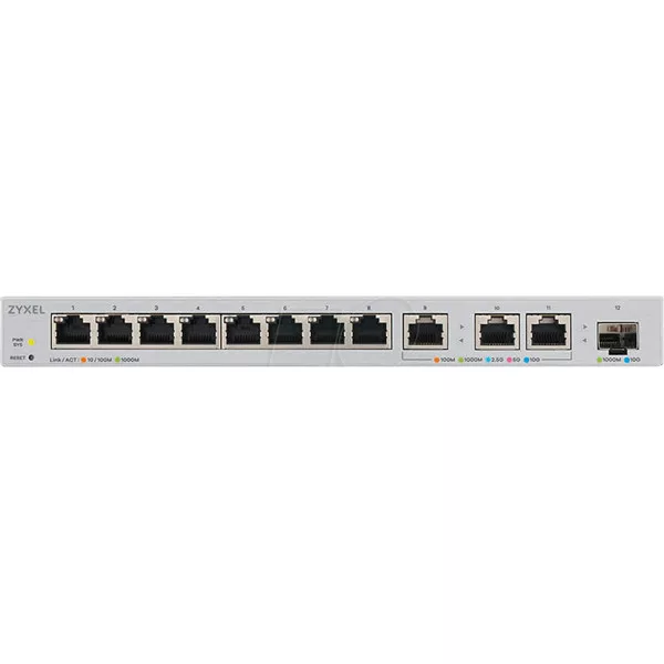 ZYXEL Switch 11x1000Mbps (3x10G) + 1xGigabit SFP+, Fémházas Webmenedzselhető, XGS1250-12-ZZ0102F
