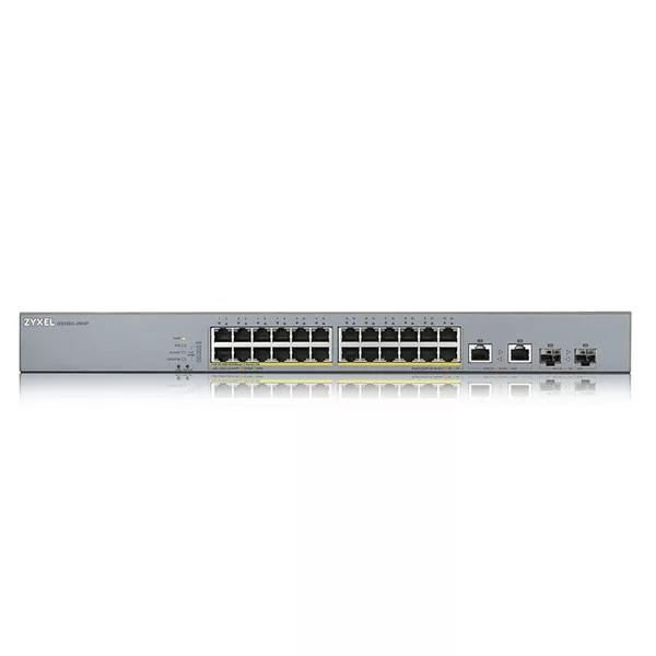 ZYXEL Switch 24x1000Mbps (24xPOE) + 2xGigabit kombó SFP Menedzselhető Rackes, GS1350-26HP-EU0101F