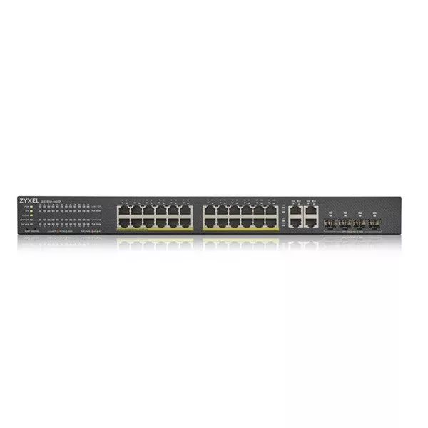 ZYXEL Switch 24x1000Mbps (24xPOE) +4xGigabit kombó SFP+, Fémházas Menedzselhető, (24xGbE POE port), GS1920-24HPV2-EU0101