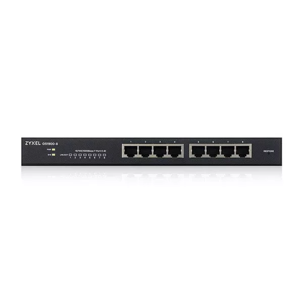 ZYXEL Switch 8x1000Mbps, Fémházas, Menedzselhető (8GbE port), GS1900-8-EU0102F