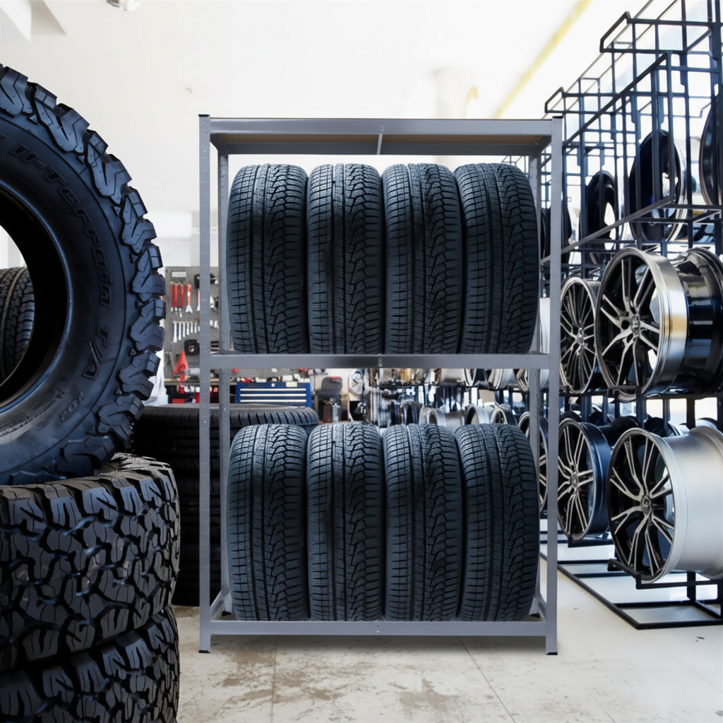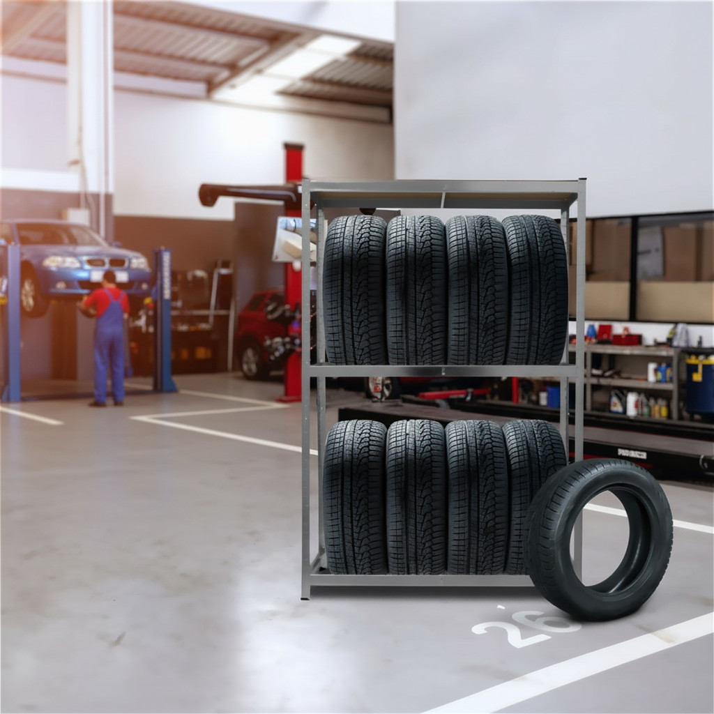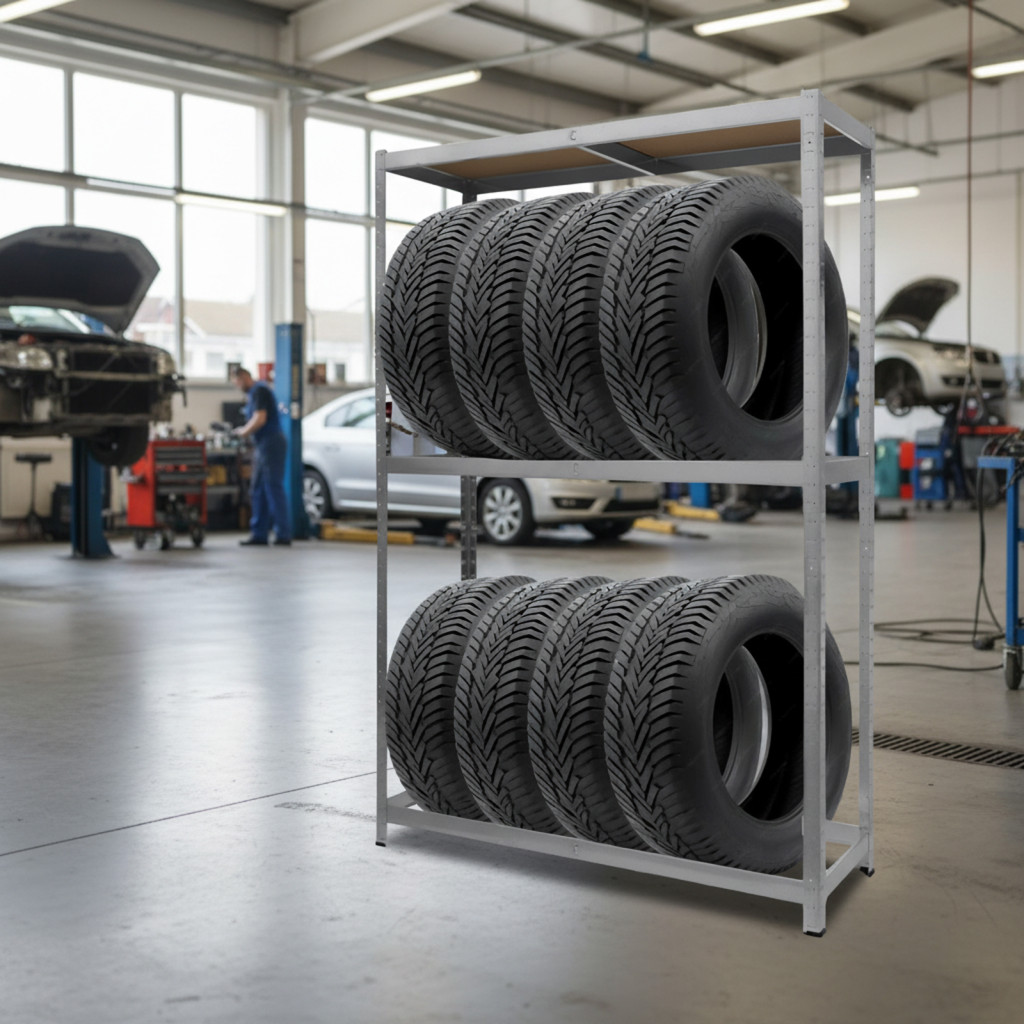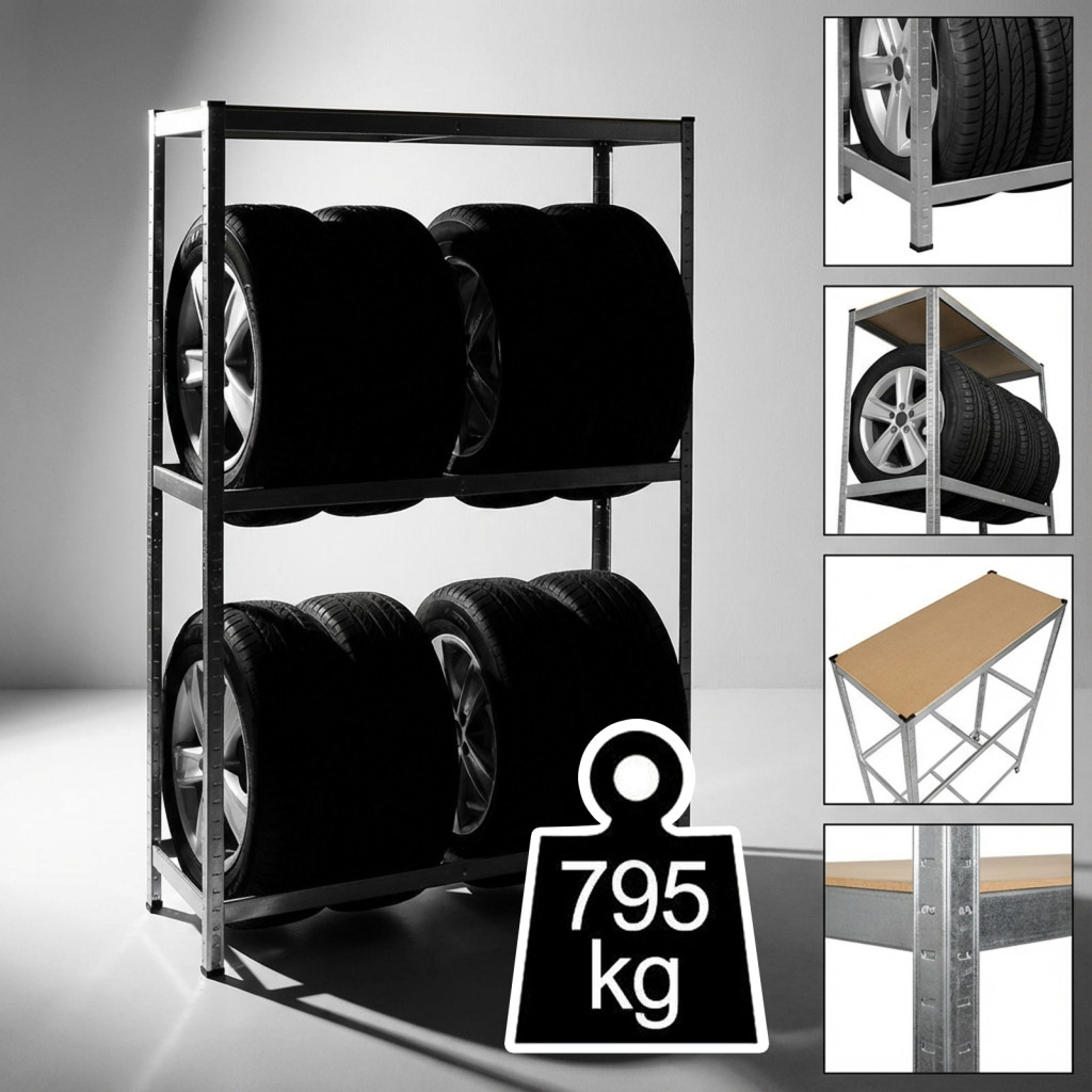 Tárolja rendezetten és biztonságosan a gumiabroncsait ezzel a strapabíró, fémből készült tároló állvánnyal. Az állvány praktikus kialakításának köszönhetően ideális választás garázsokba, műhelyekbe vagy akár raktárakba is. Főbb jellemzők: Stabil és tartós szerkezet: Kiváló minőségű fémből készült, amely hosszú élettartamot és megbízhatóságot biztosít. Tágas tárolókapacitás: Az 180 cm magasság, 120 cm szélesség és 40 cm mélység elegendő helyet nyújt akár több gumiabroncs tárolására is. Kompakt kialakítás: Helytakarékos megoldás, amely segít rendezetten tartani a teret. Egyszerű összeszerelés: Az állvány könnyen összeállítható, az egyértelmű útmutatónak köszönhetően.