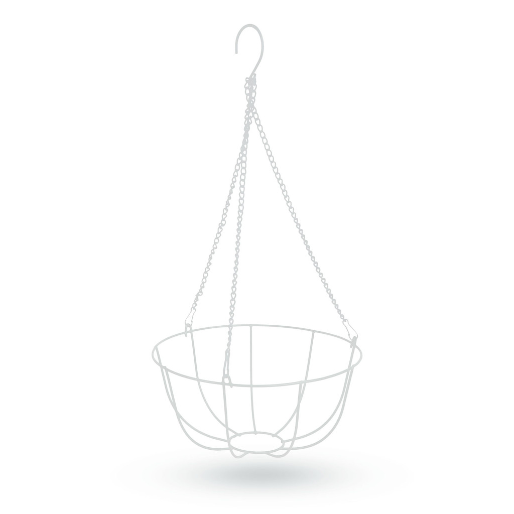 Fehér, akasztható kosár elsősorban virágcserepek, kaspók felakasztására. A kampós kialakításnak köszönehetően egyszerűen rögzíthető. A fehér szín jól mutat bármelyik kertben, teraszon. A kosárból lecsüngő virágokkal Ön is varázslatos hangulatot termethet kertjében.