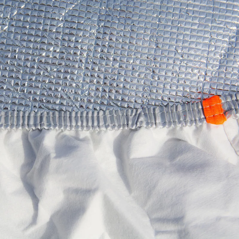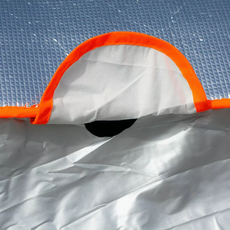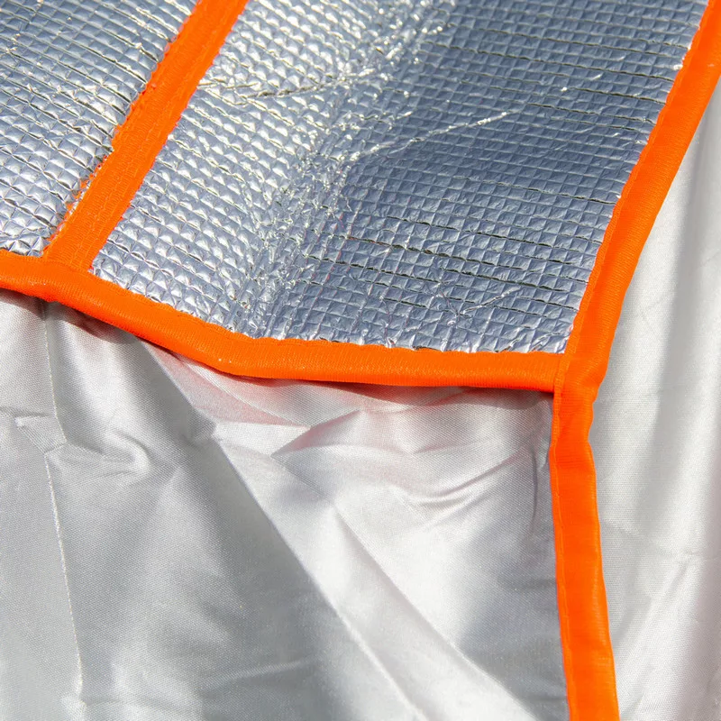 Anyaga: aluminíum védőfólia, PES polyesterfabric, 5 mm polypropylene hab, puha szövetbélés.