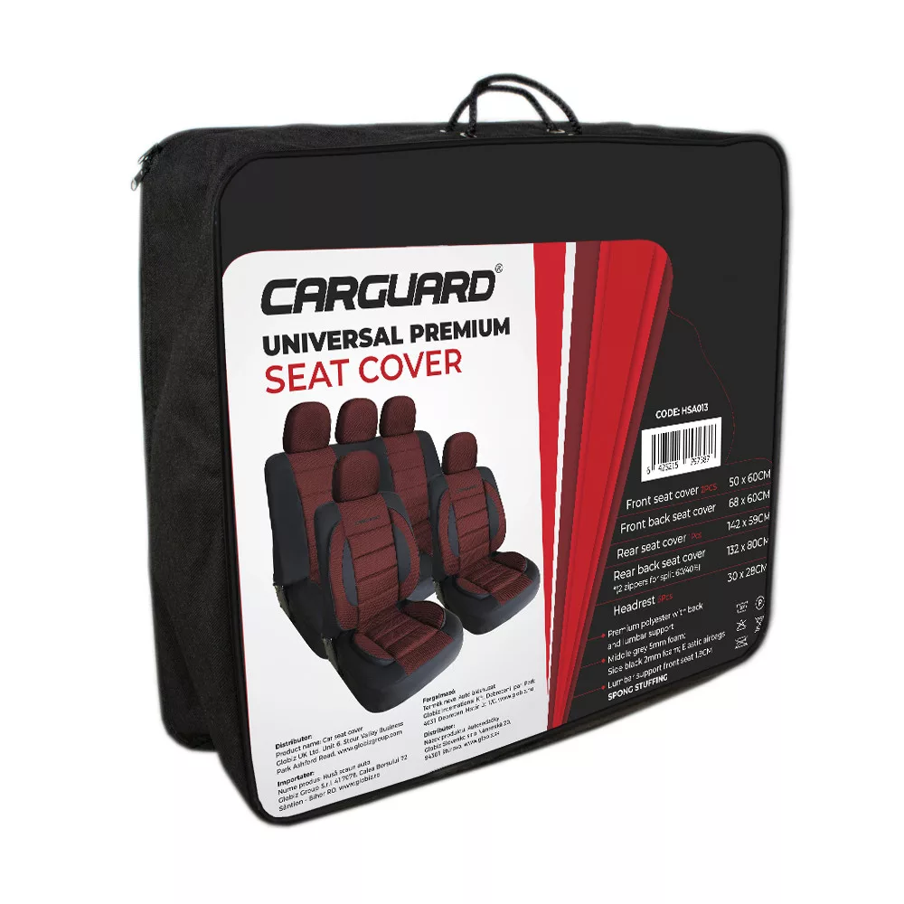 Ismerje meg a CARGUARD prémium univerzális autósülés-huzatok eleganciáját és kiváló minőségét! Bármilyen méretű vagy típusú autósülése legyen, univerzális huzataink tökéletesen illeszkednek, maximális védelmet nyújtva a kopás, szennyeződés és sérülések ellen. Prémium, ellenálló és könnyen tisztítható anyagokból készültek, nemcsak elegáns és kifinomult megjelenést kölcsönöznek az autónak, hanem kényelmet is biztosítanak az utazások során. A poliészter felső réteg és a huzatok gyártásához használt minőségi anyagok lehetővé teszik a levegő áramlását, így extra kényelmet biztosítanak. Ez a szett teljes védelmet nyújt legyen szó a két első vagy a hátső ülésről, beleértve a fejtámlákat is. Az univerzális méretnek és rögzíthetőségnek köszönhetően nagyon sok autóval kompatibilis. A fém rögzítőkampók segítségével könnyen és gyorsan felfogatható az ülés alján. Védje meg autója ülését és találja meg kínálatunkban az Önnek megfelelő színösszeállítást.